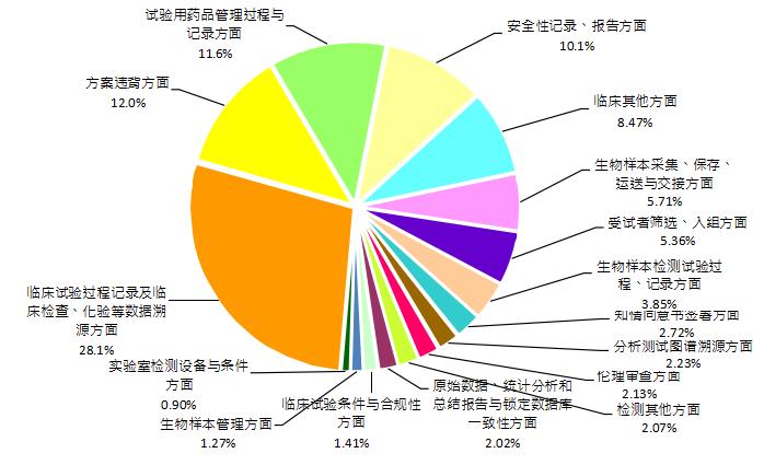 图 1. 核查缺陷分布情况 其中,在对临床部分现场核查发现的4583项缺陷汇总分析,频次最高的缺陷条款如下图: