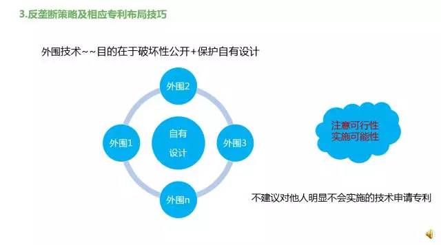 首先要分析自己的产品或者技术方案有多少个可专利点,并检索判断单独申请各个可专利点的授权可能性,对于授权可能性非常高的单个技术点,就可以先去申请专利,同时一个产品必定有很多技术点,可以在不同的时间去申请这些可专利性非常强的技术点。 举个例子,一个产品有10个可以授权的技术点,那这10个技术点并不需要同时去申请,而是今天可以丢一个出去,明年再丢一个出去。如果每一个技术点都能保护到产品的话,那么专利的保护期限实际上是以最后一个丢出去的专利再加20年来算的(如果是申请发明专利)。这就是延长专利保护周期的一种类型。 另外一种可以参照药品的方法,我可以首先给一个范围比较大的,比如说一个药品的化学通式出去,然后利用专利申请把这个最大的范围圈起来,后面可以逐步细化,比如说我在隔年或者在什么时候选择时机选择某一个组合物的具体种类,参照我刚才说的第一种情况一样,再去申请一些专利出来,形成一个专利网络。