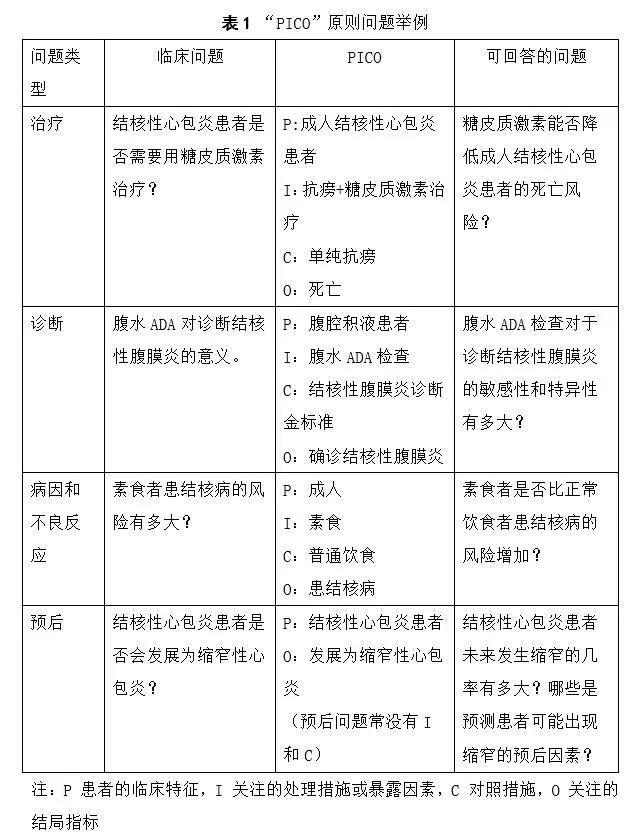 (1)明确临床问题及问题类型