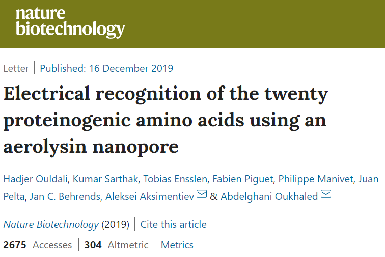 蛋白质是执行生物功能的主要分子,许多无法从基因层面解释的疾病,蛋白层面可以给出我们想要的答案。为此,蛋白质组学应运而生。科学家们预测,随着人类基因组测序工作的完成,21世纪生命科学的研究重心或将从基因组学转移到蛋白质组学。蛋白质组学是后基因组时代生命科学研究的核心内容,想要深入了解蛋白质,进一步认识生命活动和疾病发生的分子机制,首先要有合适的蛋白质测序技术做支撑。为完善蛋白质测序技术科学家做出了许多尝试。然而已有的测序方法都存在各种技术不足与应用局限性,不利于蛋白质组学在整个生命科学和生物医学研究中的应用推广。 日前,来自法国塞吉-蓬图瓦兹大学、美国伊利诺伊大学厄巴纳-香槟分校及法国初创公司DreamPore的研究人员成功开发了一种基于纳米孔技术的蛋白质组学测序系统。该系统借助于短聚阳离子载体,能够对气溶素纳米孔中所有20种天然蛋白质氨基酸中的15种进行识别。这一成果对纳米孔蛋白质测序可行性进行了论证,并为开发相关临床应用奠定了基础。相关研究成果于12月16日在线发表于学术期刊《自然—生物技术》(Nature Biotechnology)。当前,以英国Oxford Nanopore为代表的企业已成功将纳米孔技术应用于核酸测序。包括Oxford Nanopore公司在内的研究人员也在探索如何利用纳米孔技术进行蛋白质分析,当前的主要探索方向是通过寡核苷酸适配子或抗体等亲和分子对纳米孔进行功能化,蛋白质或肽分子通过纳米孔时读取氨基酸序列。由于不同分子在纳米孔附近的结合或通过会引起不同幅度的电流变化,因此基于这些变化就可以检测和表征分子,从而得到所测蛋白质的序列信息。图:利用气溶素纳米孔对20种蛋白质氨基酸进行电识别,来源:Nature Biotechnology 在本篇Nature Biotechnology文章中,研究人员使用了一种气溶素纳米孔来检测单个氨基酸,并将氨基酸附着在聚阳离子载体分子上,以确保它们能在纳米孔内停留足够长的时间,以便收集有关电流变化的足够信息。分子动力学模拟的应用表明,气溶素纳米孔具有内置的单分子阱,其将聚阳离子载体结合的氨基酸完全限制在气溶素的感应区内。这种结构特征意味着每种氨基酸在孔中花费足够的时间来敏感地测量氨基酸的排除体积。利用一个野生型气溶素纳米孔,研究人员发现不同的电流屏障可用于识别20种天然氨基酸中的13种;通过对氨基酸进行化学修饰,研究人员将这一数字提高到15种。虽然研究人员可以检测并记录纳米孔中的其余5种电流变化,但这些变化太过相似,还无法清楚地加以区分。但研究也表明,化学修饰、仪器的进步和纳米孔工程技术为鉴定剩余几种氨基酸提供了一条途径。论文共同通讯作者、伊利诺伊大学生物物理学教授Aleksei Aksimentiev表示,研究人员探索了多种方法来改善这些初步结果,包括改进纳米孔以延长氨基酸的停留时间或对目标氨基酸进行不同的化学修饰。论文共同通讯作者、塞吉-蓬图瓦兹大学研究员Abdelghani Oukhaled也指出,降低当前检测电流变化的背景噪声也可能有助于提供足够的分辨率,以区分完整的20种氨基酸。他还表示,虽然文章中研究人员未能完全区分所有的20种氨基酸,但研究结果也表明这种方法是可能实现的。“这给了我们信心。我认为纳米孔蛋白质测序是可行的。”据悉,除了优化系统以识别所有20种氨基酸,研究团队下一步还将开发一种方法以驱动单个氨基酸进入纳米孔并使其有足够的停留时间,而无需本项研究所使用的聚阳离子载体。为此,研究人员正在探索一种利用水流的方法来达到这一目的。“我们的想法是利用一种酶把肽分解成单个氨基酸,迫使氨基酸进入传感器。我们需要一种驱动力,而我们的想法就是利用水流。”DreamPore公司的联合创始人Juan Pelta介绍,“气溶素纳米孔有很多优点,包括它的高稳定性等其他能力,因为它是一种蛋白质,所以我们可以通过基因改变它的特性。改变孔径和通道电荷意味着可以调整肽和通道之间的相互作用。”除了以上优化之外,研究人员还利用这一系统对修饰过的肽进行了检测。Juan Pelta指出,仅仅能读懂氨基酸是不足以获得蛋白质序列的,检测翻译后修饰也很重要。他介绍,其团队目前已经能够检测到包括蛋白质磷酸化在内的各种纳米孔信号变化。在这篇论文中,研究团队还提出了将该技术应用于蛋白质组学测序的设想:使用化学或酶学方法从目标蛋白的一个拷贝中按顺序切割末端氨基酸,然后将其导入纳米孔。他们指出,这个过程可以在大量的“电隔离体”(electrically isolated volumes)上并行完成。从长远来看,DreamPore公司希望开发能够大规模测序蛋白质及多肽的技术平台。短期内,该公司将与医院合作,致力于开发针对脑癌复发生物标志物的靶向检测平台。未来,该公司表示将不仅仅停留在纯科研领域,而是进一步进入医疗行业,利用纳米孔技术帮助解决临床需求。该公司预计在未来几年内,在证明该平台的技术有效性并开展脑癌标志物相关临床应用后,其团队将进一步开发相关的IVD检测产品。参考资料: 1. Ouldali, H., Sarthak, K., Ensslen, T. et al. Electrical recognition of the twenty proteinogenic amino acids using an aerolysin nanopore. Nat Biotechnol (2019) doi:10.1038/s41587-019-0345-2 2. Nanopore Protein Sequencing Feasibility Demonstrated by French Startup, Collaborators |