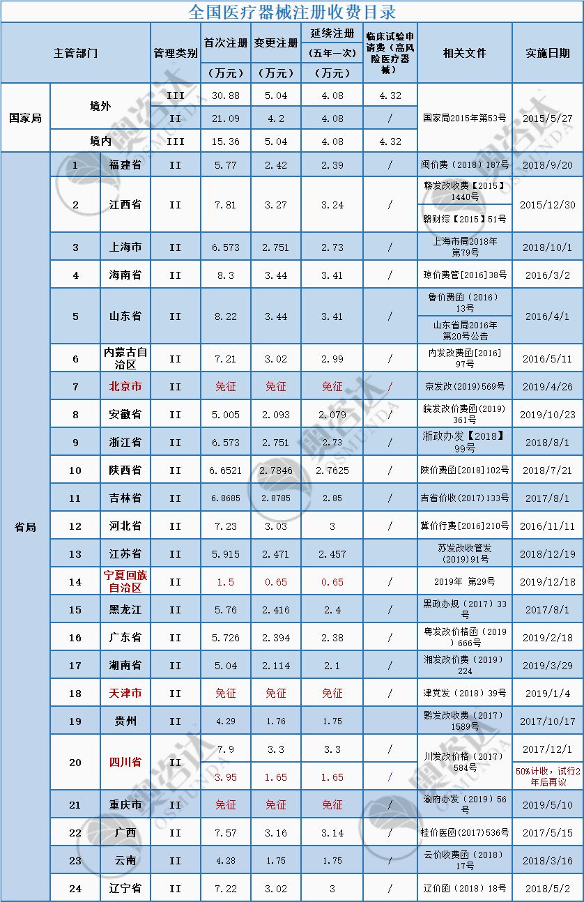 根据原自治区物价局、财政厅《关于核定药品、医疗器械产品注册收费标准的复函》(宁价费发〔2016〕45号)和自治区发展改革委《关于我区药品医疗器械产品注册收费有关问题的复函》有关规定,经研究决定将我区药品、医疗器械产品注册收费标准在原有基础上降低50%,调整后的我区药品、医疗器械产品注册收费标准如下,自2020年1月1日起执行。 药品注册收费标准 单位:元/次 项目分类 | 收费标准 | 不改变药品内在质量的药品补充申请注册 | 常规项 | 1100 | 需技术审评的 | 5000 | 药品再注册(五年一次) | 5000 | 注:1.药品产品注册收费按一个原料药或一个制剂为一个品种计收,如再增加一种规格,则按相应类别增收20%注册费。2.《药品注册管理办法》中属于省级药品监管部门备案的药品补充申请事项,不收取补充申请注册费,如此类申请经审核认为申请内容需要技术审评的,申请人应按照需要技术审评的补充申请的收费标准补交费用。 |