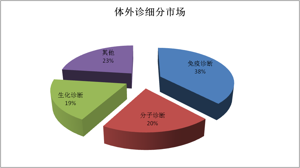 医疗健康产业是未来最有发展前景的行业之一,这一点在企业家的圈子里基本达成了共识,国务院此前印发的《“健康中国2030”规划纲要》明确了目标:到2020年,健康服务业总规模超8万亿,到2030年达16万亿。 在众多的医药子赛道中,医疗器械是未来重要的投资方向之一,一方面是由于医疗器械的发展前景广阔,景气度非常高;另一方面,医疗器械受利空政策的影响比较小,不像仿制药领域受“带量采购”等政策的影响非常大。 前瞻产业研究院的数据显示,2019年国内医疗器械的市场规模达到6259亿元。从盈利的角度来说,根据中康产业资本研究中心的数据 ,2019年,64家医疗器械A股上市公司合计营业收入1190.33亿元,同比增长14.01%,合计获得归母净利润186.91亿元,同比增长14.38%。 体外诊断(IVD)作为医疗器械的重要分支,在人口老龄化大背景、医疗服务需求的增长以及国产替代大趋势等因素的推动下发展非常快,《每日财报》今天聚焦的主角就是体外诊断。 1 先来做一下知识普及,体外诊断(IVD)是指在人体之外,通过对人体样本(血液、体液、组织等) 进行检测而获取临床诊断信息,进而判断疾病或机体功能的产品和服务。 根据Evaluate Medtech的数据,2017年全球医疗器械市场规模为4050亿美元,其中IVD领域526亿元, 在医疗器械市场中的占比约为13%。根据中国医药物资协会,2018年中国医疗器械市场规模5304亿元,其中IVD领域713亿元,在医疗器械市场中的占比超过13%。从终端用户来看,2018年国内IVD产品主要客户公立医院的检查收入达3157亿元、同比增速为12.48%,重要客户ICL和体检中心行业增速也在 20%左右或以上。 下游需求旺盛带动上游市场规模的快速增长,2018年中国IVD行业规模713亿元,同比增长25.6%,远超全球IVD市场6.0%的增速。按检验原理和方法的不同,体外诊断细分市场主要可以分为生化诊断、免疫诊断、分子诊断、微生物诊断、血液诊断、POCT(即时诊断)等。其中,免疫诊断占比最大为38%,分子诊断超越生化诊断成为第二大类别,分别占比20%、19%。