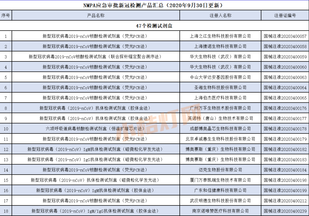 汇总丨NMPA应急审批新冠检测产品(2020年10月1日)