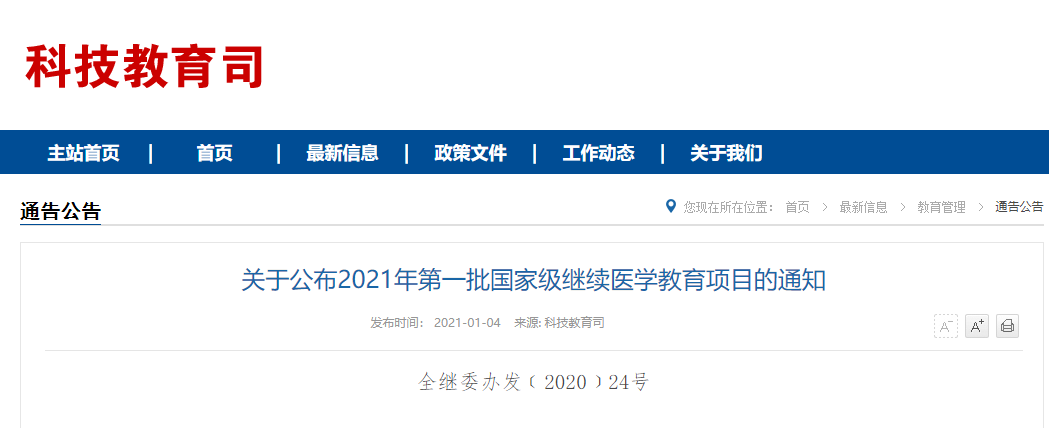 根据《国家级继续医学教育项目申报、认可办法》(全继委发﹝2006﹞11号)的有关规定,经全国继续医学教育委员会学科组专家专业评审,现将评审通过的项目作为2021年第一批国家级继续医学教育项目予以公布,共计12225项(附件1)。项目通过国家卫生健康委员会网站(http://www.nhc.gov.cn)、中华医学会网站(http://www.cma.org.cn)和国家级继续医学教育项目网上申报及信息反馈系统(http://cmegsb.cma.org.cn)发布。