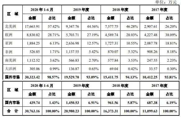 实则上,此次安旭生物产品上市申请被拒并不是突发性事件,可追溯到今年1月中旬。 2021年1月15日,国家药品监督管理局官网公开发布了《国药监局关于2020年医疗器械临床试验监督抽查中真实性问题的公告(2021第11号)》。公告称,国家药品监督管理局于2020年11月,对在审的10个医疗器械注册申请项目开展了临床试验监督抽查,涉及27家临床试验机构。国家药监局检查发现,杭州安旭生物科技股份有限公司生产的人类免疫缺陷病毒抗体/丙型肝炎病毒抗体/乙型肝炎病毒表面抗原/梅毒螺旋体抗体联合检测试剂盒(免疫层析法)(受理号:CSZ2000162)在浙江大学医学院附属第一医院开展临床试验中,医疗机构留档的电子照片拍摄时间、地点与临床试验实际时间、地点不一致,临床试验数据无法溯源。上述《公告》决定,根据《中华人民共和国行政许可法》第七十八条和《体外诊断试剂注册管理办法》第四十九条规定,对该注册申请项目不予注册,并自不予注册之日起一年内不予再次受理该项目的注册申请,并责成浙江省药品监督管理局切实履行对安旭生物和相关临床试验机构的属地监管责任,依法依规调查处理,调查处理结果报国家药监局。同时,国家药监局还强调,申办者和临床试验机构应当严格按照《医疗器械临床试验质量管理规范》要求开展临床试验,切实落实主体责任,确保临床试验过程科学规范、结果真实可靠。各省级药品监督管理部门要高度重视对医疗器械临床试验的监督管理,采取有效措施,加强对本辖区内申办者和临床试验机构的监管,按照“四个最严”的要求,切实落实监管责任。值得注意的是,安旭生物早在2020年6月就已获得科创板上市申请受理,拟募资4.59亿元,2020年11月3日通过上市委会议,2020年12月30日成功提交科创板注册,截止目前,据上交所官网显示,目前安旭生物还处于注册结果审核阶段。有业内人士表示,在关键时刻曝出临床数据造假事件,这或将为安旭生物科创板上市带来变数。 据安旭生物招股书显示,其成立于2008年,总部位于杭州,专注于现场即时检测(POCT)试剂及仪器的研发、生产与销售,拥有抗原抗体自主研发生产的生物原料技术平台,以及成熟的免疫层析及干式生化诊断技术平台,产品覆盖毒品检测、传染病检测、慢性病检测、妊娠检测、肿瘤检测、心肌检测、生化检测、过敏原检测等八大领域的POCT试剂,产品销往美国、德国、英国、加拿大、俄罗斯、墨西哥、泰国、印尼及波兰等多个国家,已成为国内少数几家在POCT国际市场能够与跨国体外诊断行业巨头竞争的中国体外诊断产品供应商之一。财务业绩方面,安旭生物2017年、2018年、2019年、2020年1-6月,取得营收分别为1.11亿元、1.64亿元、2.10亿元、3.08亿元,相应的净利润分别为-579.15万元、3340.93万元、5444.76万元、1.72亿元。安旭生物2017-2020年1-6月营收情况(图片来源:上市招股书)去年的新冠疫情带来了诊断检测市场的暴增,自2020年3月起,安旭生物研发的新冠病毒检测试剂(免疫层析法)向境外市场销售,在海外市场的带动下,其去年截止前三季度累计销售收入达到4.7亿元(经审阅),实现净利润2.53亿元(经审阅),分别同比增长203.82%、468.93%。不过,对于业绩的暴增,安旭生物也提醒,此类突发公共卫生事件持续时间存在不确定性,如果本次新冠疫情在全球范围内得到快速有效控制,则公司新冠病毒相关检测试剂销量可能快速回落,加之近期市场上新冠病毒相关检测产品不断推出,市场竞争加剧,产品利润空间亦可能大幅下降,且全球经济政治形势不断变化,国内新冠病毒相关检测试剂出口易受国际关系变化影响,而截至目前公司新冠病毒相关检测试剂仅能在境外销售,外销业务稳定性存在一定不确定性。因此,本次新冠疫情带来的业绩增长具有偶发性,公司2020年1-9月业绩爆发式增长存在不可持续的风险。据悉,安旭生物冠检测试剂以抗体检测为主、抗原检测为辅,尚未覆盖核酸检测,同时,抗体检测、抗原检测试剂均尚未获得国内产品注册证,仅能面向国际市场销售,无法在国内市场销售,新冠相关检测试剂应用在功能和销售国别上存在一定局限性,在国外市场,抗体检测试剂已取得美国及欧盟等认证并实现较大规模销售;抗原检测试剂已取得欧盟认证,在欧盟地区逐步实现销售。不仅是在新冠检测产品方面,在其他产品销售方面,安旭生物也以外销为主,招股书显示,安旭生物近4年内公司境外销售收入占比超过93%,销售模式以ODM模式为主、OBM为辅。报告期内安旭生物主营业务收入的区域构成情况(图片来源:上市招股书)截至2020年6月30日,安旭生物取得境内第一类医疗器械备案凭证1个、境内第二类医疗器械注册证书20个、第三类医疗器械注册证书8个;发行人及子公司取得美国FDA510(K)认证22个、200项产品的欧盟CE认证、加拿大MDL许可证书33个,24个产品获乌克兰认证,111个产品获马来西亚认证,56个产品完成印尼注册。 |