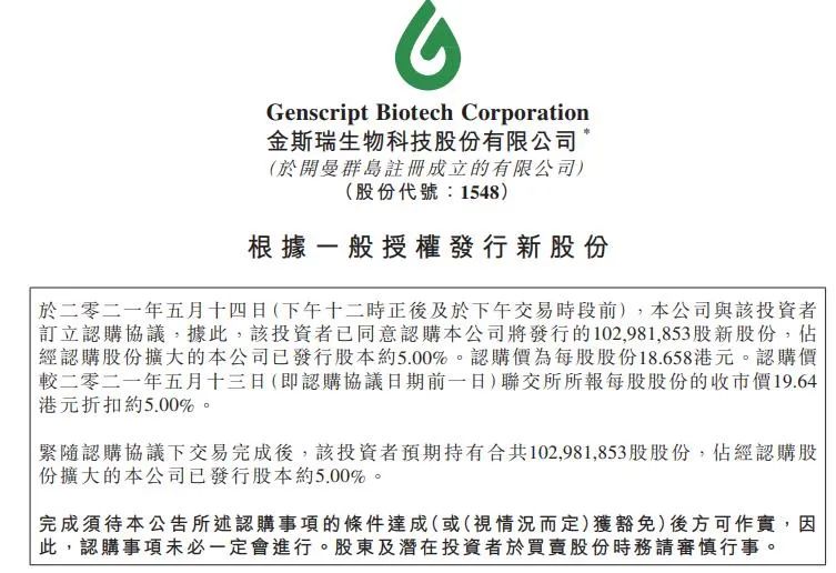 近日,刚完成180亿美元资金募集的高瓴资本豪横斥资超80亿港元入股金斯瑞及其旗下多家子公司引发业内关注。 重金投注达成多笔交易 根据金斯瑞联系发布的多个公告,高瓴资本与其达成的交易分别为: 金斯瑞控股股东GS Corp以每股18.658港元,向GNS Holding(高瓴资本为GNS Holding的唯一投资管理人)出售6178.91万股股份,占已扩大后股份约3%,总认购价约为11.53亿港元; 同时,金斯瑞将向高瓴资本发行约1.03亿股新股,占扩大后股本约5%,认购价为每股股份18.658港元,总认购价为约19.21亿港元; 上述两项交易完成后,意味着高瓴资本以30.74亿港元持有金斯瑞8%的股份。 此外,金斯瑞间接全资附属公司金斯瑞蓬勃生物(Probio Cayman)迎来A轮融资,高瓴资本认购金斯瑞蓬勃生物A轮融资总投资额1.5亿美元(约合11.65亿港元)的A类优先股,并认购蓬勃生物7000万美元可转债,本轮融资前,蓬勃生物估值为7.3亿美元。 更为大宗的一笔交易是高瓴资本入股金斯瑞旗下另一家子公司传奇生物。 根据公告,金斯瑞生物的非全资附属公司传奇生物与高瓴资本订立认购协议,据此,传奇生物同意高瓴资本购买20,809,850股传奇股份,总代价为3亿美元(约23.3亿港元);传奇生物向高瓴资本发行传奇认股权证,可向传奇生物认购及购买最多合共10,000,000股传奇股份,总行使价为2亿美元(约15.54亿港元)。认购完成后,金斯瑞生物于传奇生物的股权将摊薄至58.31%。 受上述消息提振,金斯瑞股价一路上涨,截止今日(4月17日)收盘,其每股报24.4港元,总市值超477亿港元。 旗下的明星子公司 金斯瑞在业内被称为“全球基因合成之王”,所谓基因合成,即人工合成出人类想要的基因序列,然后把新的基因序列放到细胞中去,使其变成人类所需要的抗体、蛋白等特定用途产品,基因合成是生物医药、生命科学的基础,不过,有资料显示,基因合成服务是一项代工服务,仪器和技术虽然复杂,但利润较低,早期金斯瑞生物的基因合成业务对投资者并不那么具有吸引力,真正让金斯瑞获得资本青睐的是其细胞治疗业务。 成立于2014年传奇生物是金斯瑞旗下专攻CAR-T等细胞治疗产品研发的公司,2020年6月,金斯瑞将传奇生物分拆在纳斯达克上市,被称为“中国CAR-T第一股”。 传奇生物产品管线(图片来源:传奇生物官网) 据悉,传奇生物已在细胞治疗领域布局多条管线,其中进展最快的产品是BCMA CAR-T疗法LCAR-B38M(西达基奥仑赛),该产品是传奇生物开发的一款靶向B细胞成熟抗原(BCMA)的CAR-T疗法,包含4-1BB共刺激结构域和两个BCMA靶向单域抗体,用于接受过既往包括蛋白酶体抑制剂,免疫调节剂和抗CD38抗体的治疗方案和在末次治疗期间或之后出现疾病进展的复发或难治性多发性骨髓瘤成年患者。 2017年12月,传奇生物曾向国家药监局药审中心(CDE)提交了“LCAR-B38M CAR-T细胞自体回输制剂”用于治疗多发性骨髓瘤的临床试验申请,并于2018年3月获得批准,成为中国首个获批IND的CAR-T产品。 除了国内临床试验的开展,传奇生物也在全球同步推进细胞疗法临床试验,2017年12月22日,传奇生物与强生旗下制药公司杨森签订全球化合作协议,共同开发、生产和销售LCAR-B38M,据金斯瑞发布的2020年业绩财报显示,传奇生物2020年收入为7570万美元,就主要来自与杨森的合作中获得的前期付款和里程碑付款的收入确认。 截止目前,LCAR-B38M已相继获得美国孤儿药资格和突破性疗法认定、欧盟委员会的优先药物认定和孤儿药资格,以及日本和韩国的孤儿药资格,去年8月,LCAR-B38M还获得了国内首个突破性疗法认定。(医谷注:在LCAR-B38M之后,还包括药明巨诺的瑞基仑赛注射液(暂定)、科济生物的CT053、合源生物的CNCT19等CAR-T疗法均被纳入突破性治疗品种) 另悉,传奇生物就LCAR-B38M已分别向美国FDA提交和欧洲药品管理局提交了上市许可申请,并有望在2021下半年向国家药监局递交上市申请(医谷注:现阶段,复星凯特的CAR-T产品阿基仑赛注射液和药明巨诺的CAR-T产品瑞基仑赛注射液(暂定)的上市申请已先后被国家药监局受理),并获得FDA的上市批准。 有分证券分析人士表示,预计2022年全球多发性骨髓瘤医药市场规模将增长至271亿美元,LCAR-B38M采用双靶位设计,较同类产品肿瘤靶向特异性更高,作为传奇生物即将实现首个商业化的产品,其市场前景被看好。 除了LCAR-B38M,传奇生物的创新产品管线还在进一步扩展,正向着成为一家平台型CAR-T公司不断迈进,其旗下用于治疗成人复发或难治性T细胞淋巴瘤(TCL)的研究性自体嵌合抗原受体T细胞(CAR-T)疗法LB1901也于2020年12月获得美国FDA新药临床试验申请的批准,成为传奇生物在美国获得批准的第二个IND申请。另外,传奇生物还在推进多项研究者发起的临床计划,包括弥漫性大B细胞淋巴瘤(DLBCL)、急性髓细胞性白血病(AML)、胃癌、胰腺癌和非霍奇金淋巴瘤(NHL)的异体治疗等。 多产品线的齐头并进也或是此次高瓴资本重金投注的原因,但值得一提的是,传奇生物并不是高瓴资本投资的第一家细胞企业,公开资料显示,此前,高瓴资本曾作为基石投资者之一投资了药明巨诺;今年1月,高瓴资本又通过NVMB XIII Holdings Limited“突击”认购了科济药业C+系列融资1000万美元。 |