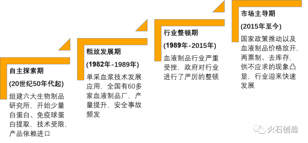 血液制品属于刚性需求药品,在急救、感染以及凝血障碍疾病治疗上有着其他药品不可替代的作用。根据2015年版《中国药典》的定义,血液制品是由健康人的血浆或特异免疫人血浆分离、提纯制成的治疗产品,例如人血白蛋白、人免疫球蛋白、人凝血因子等,用于诊断、治疗或被动免疫预防。人体血液包括血浆(~50%)、红细胞(~42%)及白细胞和血小板(~8%),血浆中约8%为血浆蛋白。我们通常说的血液制品就是从这8% 的蛋白质中分离提纯制成的,通过分离提纯可以进一步得到白蛋白(60%)、免疫球蛋白(15%)、凝血因子(1%)及其他蛋白成分(24%)。血液制品起源于20世纪40年代二战期间,美国哈佛大学E.J.Cohn教授和其工作小组研究发明出一种被称为低温乙醇法的工艺,从人血中提纯出人血清白蛋白,后期经历了白蛋白、凝血因子、静丙三大产品驱动的阶段。我国的血液制品在国内从50年代开始起步,经历了粗放发展导至安全事故,后受到政府严厉整顿,目前还处于市场化发展的初期。