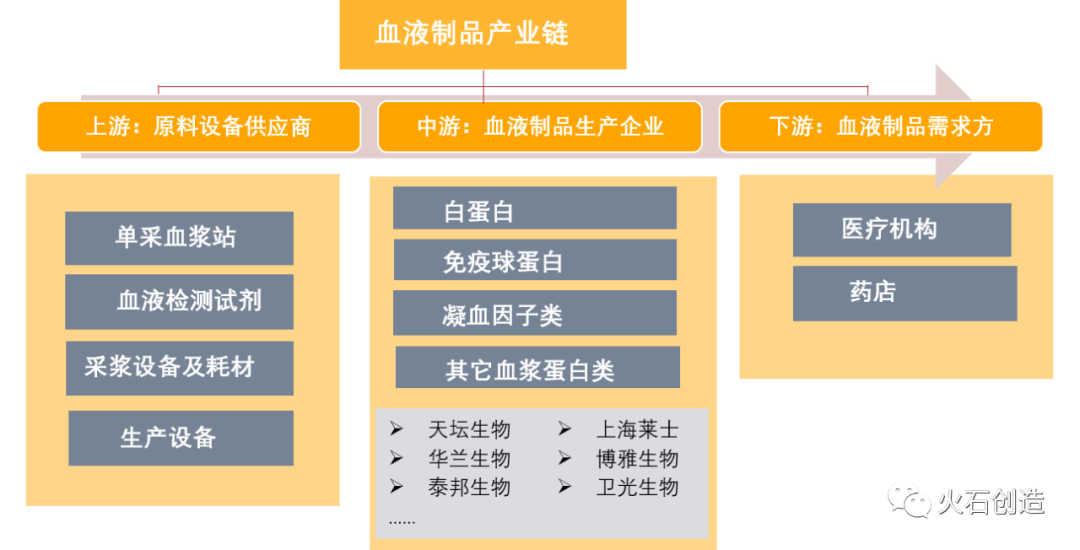 血液制品产业链主要包含原料设备供应商、血液制品生产企业和血液制品需求方。