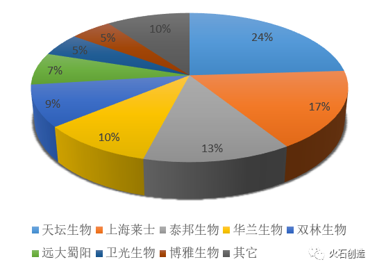 中游分析——行业集中度高,血液提取工艺制约企业发展:血液制品的中游生产企业有28家,其中只有6家为非上市公司且未受上市公司控股,市场资源在很大程度上已被头部企业并购重组,行业集中度较高。最主要的2种产品白蛋白和静丙的销量占据整体行业产品份额80%,白蛋白60%依赖进口,行业市场份额集中在山东泰邦、华兰生物、成都蓉生、远大蜀阳、上海莱士等几家头部企业。