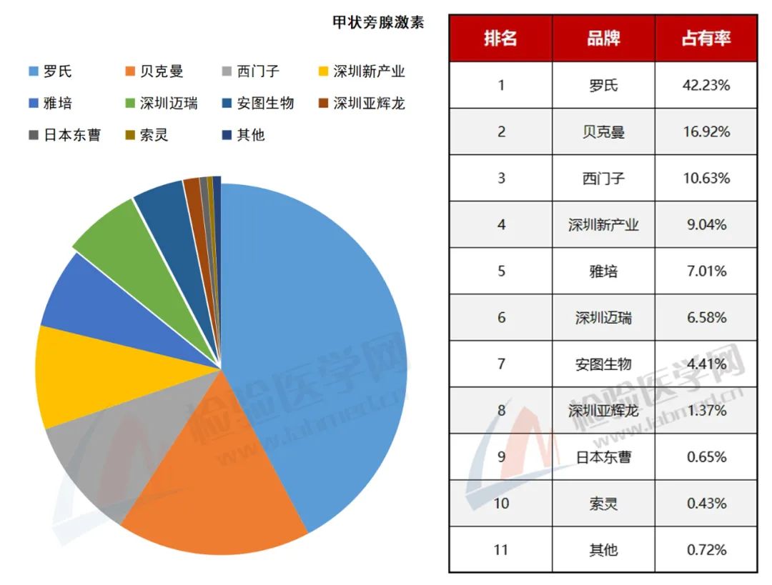 甲状腺功能检测 甲状腺是人体重要的内分泌腺体,其主要进行甲状腺素的合成、储存和释放。甲状腺功能紊乱或激素分泌异常可引起人体神经系统、循环系统、消化系统等多系统出现异常症状,甚至可以危及生命。早检测、早诊断,有助于甲状腺功能紊乱的及时评估及治疗。随着血清学检测性能的不断提升,血清标志物检测在甲状腺疾病诊疗中的应用价值日益凸显。 临床上,甲状腺功能检测指标包括促甲状腺激素(TSH)、三碘甲状腺原氨酸(T3)与游离T3(FT3)、反三碘甲状腺原酸(rT3)、甲状腺素(T4)与游离T4(FT4)、促甲状腺素受体抗体(TRAb)、甲状腺球蛋白(Tg)、甲状腺球蛋白抗体(TgAb)、抗甲状腺过氧化物酶抗体(TPOAb)、降钙素(CT)等等血清学指标。 性激素检测 性激素是人体内分泌出来的一种激素,对人体的发育有着一定的作用。但是,性激素的数值并不是完全固定的,每个人体内的性激素数值会有所不同。而且,人体在不同的时段性激素的数值也会有一定的变化,数值并不是固定不变的。性激素对不同性别、不同年龄段的人均有着重要的生理意义。 常规性激素六项检查包括:垂体分泌的促性腺激素—卵泡刺激素(FSH)、黄体生成素(LH)、催乳激素(PRL)、雌激素(E)、孕激素(P)、雄激素(T)。除此外,还有性激素结合球蛋白(SHBG)、17-A-羟孕酮、硫酸脱氢表雄酮等辅助检测。通过检测这些血清的激素水平,可了解女性的卵巢基础功能,并对男女生殖内分泌疾病进行诊断。 以下是统计了国内3000多家各等级医院检验科及独立医学实验室的检验、仪器试剂使用情况,以下数据截至2020年12月31日。 声明:1、凡本网注明“来源:小桔灯网”的所有作品,均为本网合法拥有版权或有权使用的作品,转载需联系授权。2、凡本网注明“来源:XXX(非小桔灯网)”的作品,均转载自其它媒体,转载目的在于传递更多信息,并不代表本网赞同其观点和对其真实性负责。其版权归原作者所有,如有侵权请联系删除。 3、所有再转载者需自行获得原作者授权并注明来源。 最新评论相关分类图文热点 最新文章