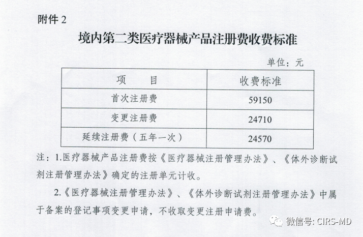 其中境内第二类医疗器械产品注册费收费标准如下: