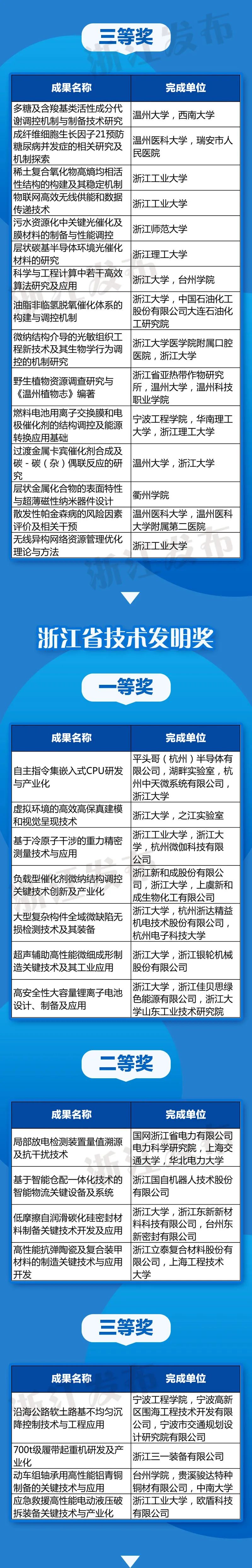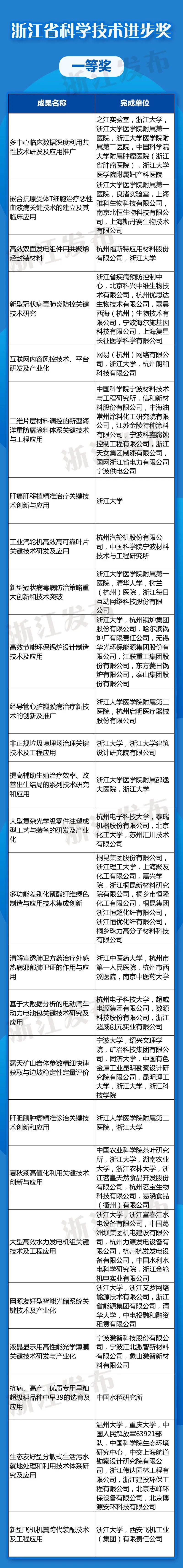 2021年6月15日,浙江省科学技术奖励大会在省人民大会堂隆重举行,会上颁布了301项“2020年度浙江省科学技术奖”。其中浙江科技大奖1项,由潘云鹤院士获得;299项成果(项目)获省自然科学奖、技术发明奖和科学技术进步奖,其中一等奖44项、二等奖90项、三等奖165项;国际科学技术合作奖1项,由英国诺丁汉大学获得。 《新型冠状病毒肺炎防控关键技术研究》成果荣获“浙江省科学技术进步奖一等奖”,涉及的体外诊断企业有: 复星诊断科技(上海)有限公司 宁波海尔施基因科技有限公司 杭州优思达生物技术有限公司 该成果其他的获奖单位包括:浙江省疾病预防控制中心、北京科兴中维生物技术有限公司、嘉晨西海(杭州)生物技术有限公司。 荣获浙江省科学技术进步奖一等奖,是对科技水平的充分认可,更是对其学术价值的重要展示。 附:全部榜单 向上滑动查看全部榜单 -END- |
