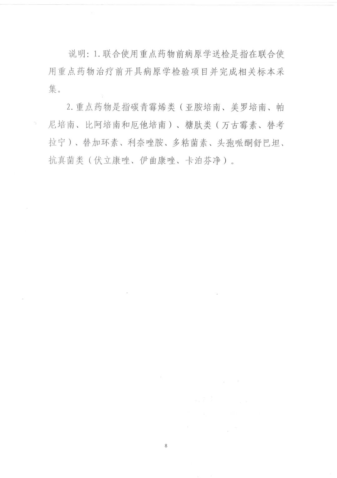 根据《2021年国家医疗质量安全改进目标说明》:提高抗菌药物治疗前病原学送检率(尤其是限制使用级以上抗菌药物),提升无菌性样本送检比例,可以有效提高抗菌药物使用的科学性和规范性,对遏制细菌耐药、提升治疗效果和保障人民群众健康权益具有重要意义。同时《说明》还明确了病原学检验项目应包括:细菌培养、真菌培养;降钙素原检测、白介素-6检测、真菌1-3-β-D 葡聚糖检测(G试验)等。