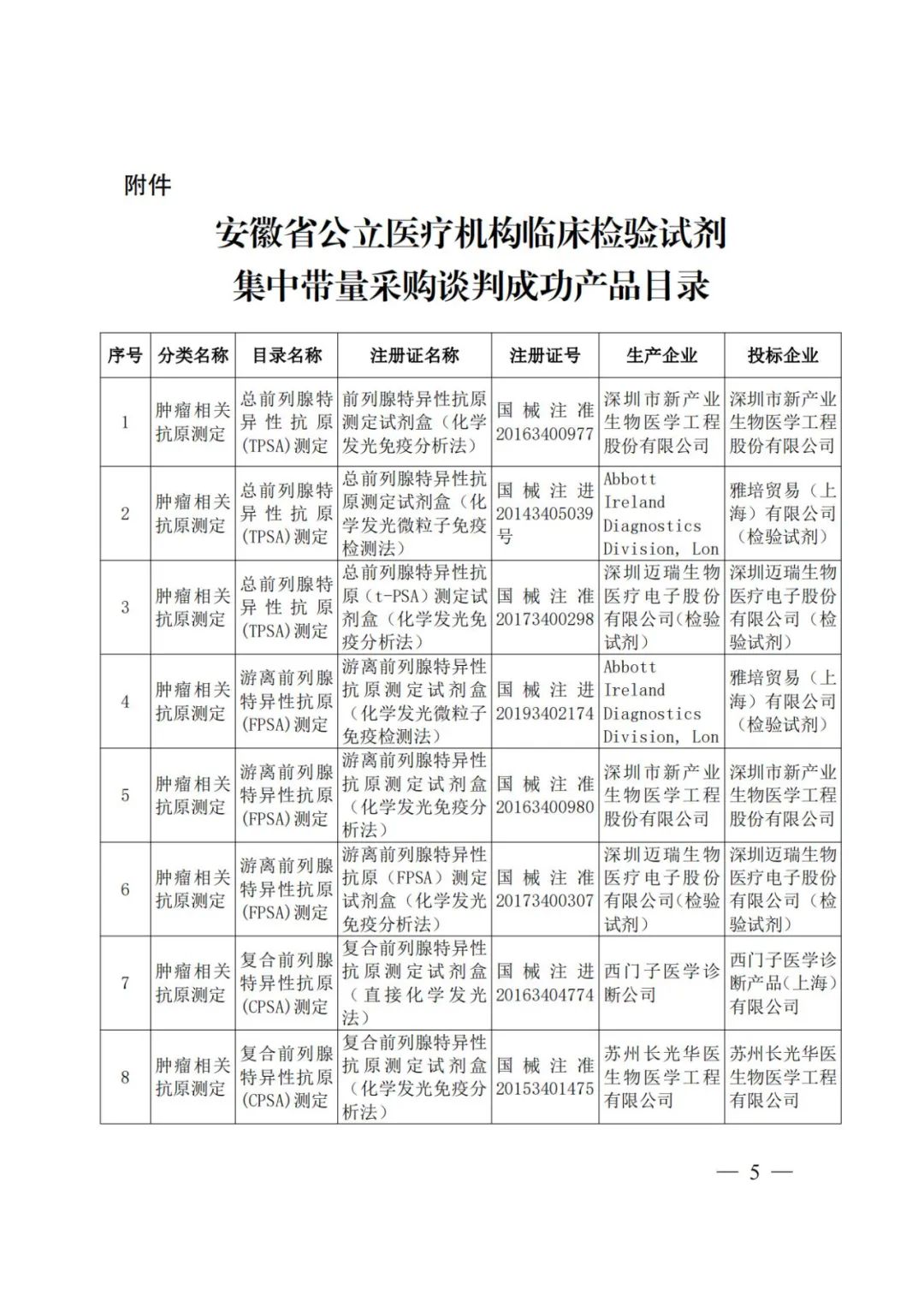 附件:安徽省公立医疗机构临床检验试剂集中带量采购谈判成功产品目录