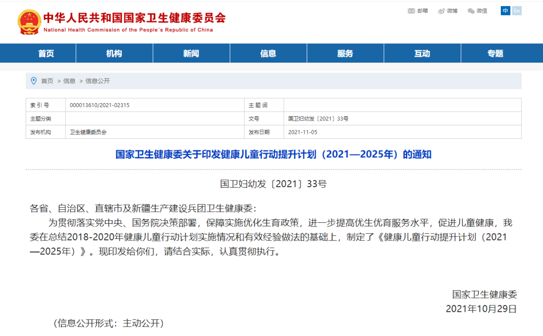 健康儿童行动提升计划(2021-2025年)