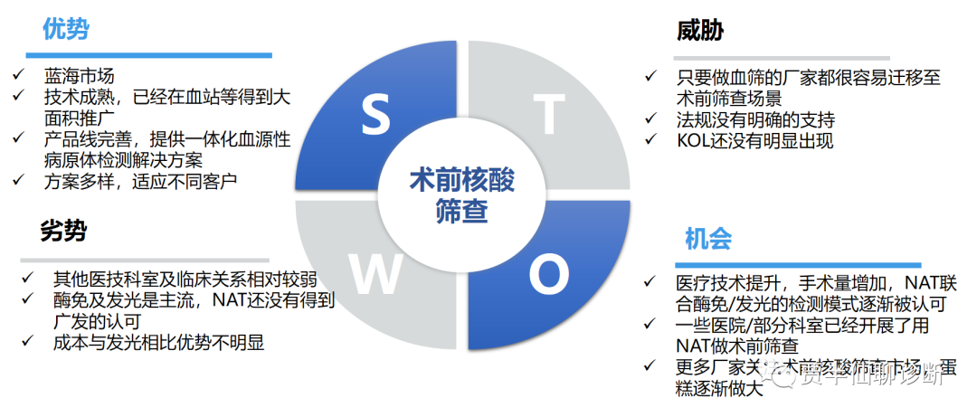 针对术前核酸筛查市场,还处在早期,也就是SO发展性战略,具体不展开。