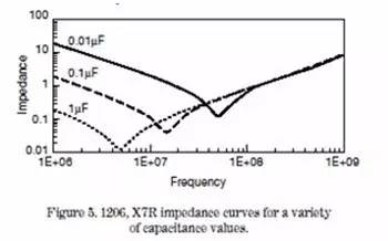 2、电容滤波在何时会失效 整改中常常会使用电容这种元器件进行滤波,往往有“大电容滤低频,小电容滤高频”的说法。 以常见的表贴式MLCC陶瓷电容为例,进行等效模型如下: 容值10nF,封装0603的X7R陶瓷的模型参数如下: 由于等效模型中既有电容C,也有电感L,组成了二阶系统,就存在不稳定性。对电路回路来说,就是会发生谐振,谐振点在如下频率处: 下图是谐振曲线的示例: