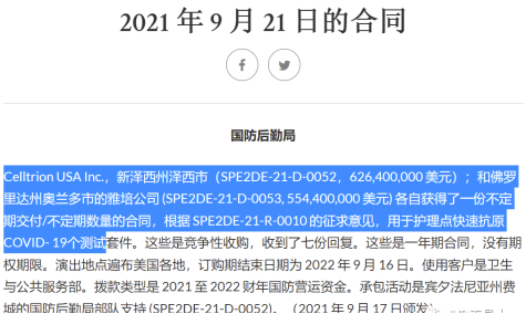 3月21日,英国政府网公布了3份新冠抗原试剂采购合同的信息,东方生物、艾康生物、基蛋生物分别间接获得5.95亿英镑、2.378亿英镑、0.85亿英镑的合同,三份合同涉及金额共9.18亿英镑,都是从2月23日开始,截止时间均是8月20日。
