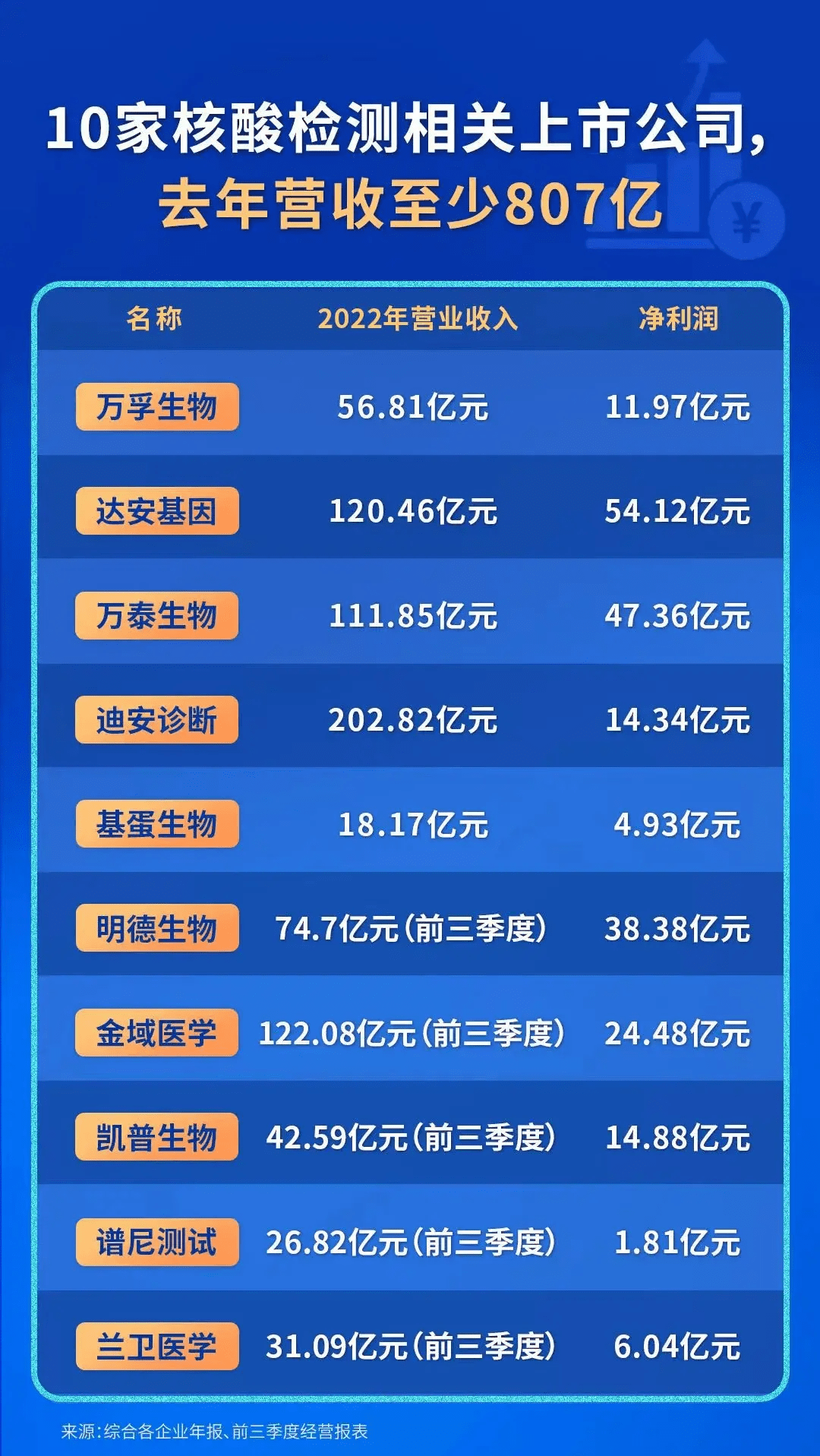 截至4月13日,已有28家医疗器械类上市公司披露了2022年年报,其中18家公司实现净利润同比增长,占比达64.29%。 从具体细分领域来看,体外诊断企业业绩整体表现亮眼。其中,10家上市公司2022年的总营收额达807亿元,在营收和净利润上均呈正增长。这10家企业中,迪安诊断营收最高,去年整体营收202.82亿元;达安基因的净利润最高,达到54.12亿元。 图片来源:人民日报客户端 2022年营收超百亿的四家企业 营收之王 - 迪安诊断: 年营收超200亿,核酸检验贡献大 迪安诊断是国内第三方医学诊断行业龙头企业之一。4月12日,迪安诊断发布2022年年度报告显示,2022年,公司实现营业收入202.82亿元,同比大增55.03%。营收大增的背后,新冠核酸检测收入贡献了近四成。净利润14.34亿,同比增长23.33%。 ![]() 迪安诊断2023年Q1相关动态: ● 与罗氏达成战略合作:2月23日,迪安诊断全资子公司北京迪安医学检验实验室有限公司(以下简称北京迪安)与罗氏诊断在妇女健康领域达成战略合作,罗氏诊断将助力北京迪安推动实验室精益化和智能化发展,提升实验室整体检验能力。 ● 与银川卫健委签订战略合作协议:3月18日,银川市卫健委与迪安诊断签订战略合作协议,双方将共同打造集学科建设、学术交流、人才培养于一体的医学前沿基地。 ● 与国际传染病医学中心达成战略合作:3月31日,国家传染病医学中心(复旦大学附属华山医院)与迪安诊断技术集团股份有限公司达成战略合作,双方将共建临床病原微生物网络实验室,并邀请30多家医院作为网络实验室首批核心单位。 利润之王 - 达安基因: 年利润54.12亿,同比增长49.6% 达安基因是以分子诊断技术为主导的生物医药高新技术企业。3月31日,达安基因发布2022年年度报告显示,2022年,公司实现营业总收入120.46亿,同比增长57.2%,增幅连续3年保持在42%以上的高速增长;净利润54.12亿,同比增长49.6%,增幅连续3年保持在47%以上的高速增长。 达安基因4月6日在互动平台回答投资者提问时表示,公司已全面进入IVD全领域,聚焦于诊断技术和产品的临床、公共卫生、检验检疫、生命健康相关领域等全场景应用,将继续做大做强PCR及分子诊断技术、产品和市场领域,积极发展免疫、生化、分析仪器等全诊断技术平台、产品和市场领域。 市值之王 - 金域医学: 市值416.18亿,2022年前三季营收122.08亿 在营收破百亿的四家企业中,金域医学以416.18亿的市值雄踞第一。据金域医学2022年前三季度营收报告显示,公司主营收入122.08亿,同比上升41.67%;净利润24.48 亿,同比上升46.41%。 ![]() 金域医学2023年Q1相关动态: 4月7日,金域医学、艾米森等6家企业签约打造肿瘤早筛生态圈,各方将发挥各自在技术和服务等方面的优势,围绕多项单癌种及泛癌种早筛的普及应用,建立可及、可享、可持续发展的肿瘤早筛生态圈。 ● 开展多中心研究项目:3月18日,金域携手陕西省国家妇产区域医疗中心,启动子宫内膜癌分子分型相关多中心研究项目。 ● 成为多个项目的公共检测平台:2月28日,噬血细胞综合征中国专家联盟海南分中心正式成立,海南金域成为联盟的公共检测平台。3月5日,中南大学湘雅医院牵头发起的中国溶酶体贮积症诊疗联盟正式成立,金域医学作为联盟的公共检测服务平台。 ● 与腾讯签署战略合作协议:2月23日,金域医学宣布与腾讯签署战略合作协议。双方将在医学检验及病理诊断数字化升级、医检服务智能化,医检AI临床应用探索等方面,展开深入合作。 万泰生物: 2022年营收111.85亿,同比增长94.51% 万泰生物主要从事体外诊断试剂及仪器、疫苗的研发、生产及销售。3月31日,万泰生物发布2022年年报显示,公司实现营业收入111.85亿,同比增长94.51%;净利润为47.36亿,较去年同期增长134%。 公司在年报中表示,2022年营收增长主要由于公司二价宫颈癌疫苗继续保持产销两旺,收入及利润继续保持高速增长。 2022年研发投入大幅增加 据东方财富Choice数据,28家医疗器械上市公司去年总研发投入为82.06亿元,较2021年的60.76亿元增长35.06%。 有两家公司2022年研发投入在10亿元以上,分别为万泰生物和达安基因。此外,共有10家医疗器械企业研发支出占营收的比重超10%。 研发投入的大幅增加表明企业对技术创新和研发能力提升的重视,有助于推动整个医疗器械行业的增长和发展,提高行业竞争力和创新能力。 内容整理自:人民日报客户端、东方财富网、金域医学官网,文章内容由“MIR医学仪器与试剂”编辑整理,转载请注明来源。 |