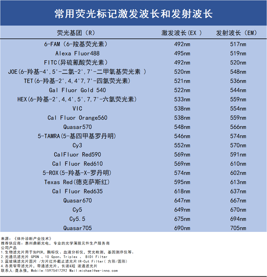 PCR市场有多大?哪些卖得好? 市场是对产品的最好检验,是用户真金白银砸出来的。有关PCR仪器市场数据,黄工找了4个渠道,灼识咨询、QY Research、头豹咨询、化工仪器网,看看不同机构、不同视角、不同时段下,国内PCR仪器市场格局,是怎样的。 头豹咨询,2022年11月,发布报告(上图)《2022年中国实时荧光定量PCR仪器及试剂行业概览》。报告预测,2022年度国内qPCR仪器,市场达120亿元,超过18万台,疫情影响约100亿。传统临床端10多个亿,非临床端(农业、畜牧、海关、科研等)基本在6~7亿元。其实,抛开疫情影响,近5年国内PCR仪器市场,差不多15~30亿元。 主营PCR仪器的苏州雅睿,去年9月申报创业板IPO,至今未上会。文中引用QY Research(北京恒州博智)数据(下图),国内qPCR仪器,2020年销售33700台(与上图头豹一致),预测2021年39000台,2022年44300台。这个数据和头豹所示差距略大。 2021年赴港IPO的,杭州博日科技,则引用灼识咨询数据(下图)。下图所指PCR仪,包括基因扩增仪、qPCR仪、数字PCR仪。2020年,国内PCR仪市场为33亿元,qPCR仪市场规模28亿元,占总体PCR仪市场的85.2%。头豹咨询报告所示为38亿元,考虑疫情影响。 以上3家机构,分别从不同角度,给出qPCR仪器的市场规模、销售数量。这些数据,差异很大,仅供参考。更直接的,是看中标数据。化工仪器网,统计了2023年1-2月份,国内PCR仪中标数据(下表)。1月份国内PCR仪采购3783万元,144台/套;2月份采购1615万元,69台/套。(点击蓝字看原文) 从上表看,1月份:国产PCR仪中标112台/套,占中标总数78%;中标金额为2822.95万元,占中标总额74.6%,平均中标单价25.20万;进口中标31台/套,中标金额为930.43万,占中标总额24.6%,平均中标单价30.01万。2月份:国产中标40台/套,平均单价17.95万,中标额为718.06万,占中标总额的43.9%;进口中标26台/套,平均单价33.56万,中标金额为872.43万。总的看,今年头2个月里,国产PCR仪中标数量更多,但中标平均单价普遍低于进口20%到40%左右。 下图为IVD仪器注册分类目录。本文重点探讨红色部分。注册编号为:2205,分子生物学分析设备。01和02,属于测序仪,下一篇再写。本文只探讨2205-03,核酸扩增分析仪器,属于Ⅲ类,最高风险等级。 通常由控制部件、热盖部件、热循环部件、光电部件、传动部件、嵌入式软件和分析软件、电源部件等组成。原理一般为利用温度控制,为核酸的体外扩增提供适宜环境,采集和分析扩增过程中产生的光、电信号。一般命名为:核酸扩增检测分析仪、实时荧光定量PCR分析仪、全自动PCR分析系统、全自动荧光PCR分析仪、全自动核酸检测分析系统、实时定量PCR仪、恒温核酸扩增分析仪。 根据《聚合酶链反应分析仪》YY/T1173-2010,PCR,聚合酶链反应或多聚酶链反应,是一种对特定的 DNA 或 RNA 片段,在体外进行快速扩增的方法。由变性一退火一延伸三个基本反应步骤构成。而PCR仪,则是基于 PCR技术原理,模拟 DNA或 RNA 的复制过程,在模板引物聚合酶等存在的条件下,特异扩增已知序列,对其进行检测分析的仪器设备。 PCR的原理,推荐看小钱的文章《#PCR,#PCR试剂,#PCR仪器,#PCR耗材》,整理的非常好。小钱运营公众号“微流控学习”3年,严谨、认真、细致、用心。和钱工这两天才加上微信,一直以来都是公众号交流。钱工的内容很精致,用心的人值得关注。 qPCR仪,通常由控制模块、温控模块、光电模块、机械模块、电源模块和软件(控制与数据处理软件)等组成。核心系统是温控模块和光电模块,前者保证反应顺利正常进行,后者保证信号完整读取。2个核心系统,建议看钱工文章:《PCR仪器之温度控制系统》《荧光定量PCR仪之荧光检测模块》(点击蓝色文章可阅读) 温控模块一般有2种,空气驱动循环温控装置和变温金属块,目前常用后者,半导体制冷片。而光电模块,核心是激发光源+光电探测器。一般也有2种模式:卤素灯/卤钨灯+工业相机(CMOS/CCD);LED+光电二极管PD/光电倍增管PMT。当然,光电模块,还有一个重要光学元件不能忽视:滤光片。这是光源和探测器的桥梁。目标片段DNA合成后,会释放荧光基团,发出一定波长的光。常用激发和发射波长如下表。 黄工想重点聊聊,qPCR仪器中的核心零部件:工业相机,即CMOS和CCD。从苏州雅睿招股书(下图)了解,这个元器件卖5~8千/个,价值不菲。工业相机,本质上是图像传感器,半导体器件。不仅在医疗设备,在工业、自动化、消费电子等行业应用甚广。 CCD( Charged Coupled Device ),电荷耦合器件;CMOS( Complementarv Metal Oxide Semiconductor ),互补金属氧化物半导体。两者每个像素块均有光电二极管,将光子转换为电荷,CCD将电荷转移到边缘读出端,在读出端同时转换为电压,再由模拟数字转换器(ADC)转换为数字信号:CMOS每个像素块都集成了放大器,每个像素块均输出电压。