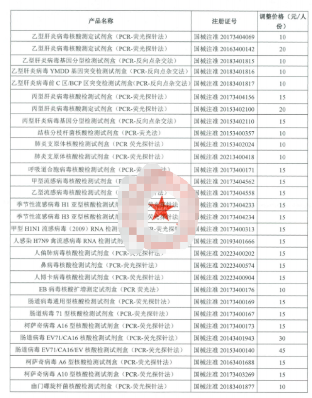 本通知自2023年7月1日执行。湘医保函〔2020〕74号和湘医保发〔2021〕63号等涉及特需医疗服务价格项目(不包括特需门诊诊查费)的文件自行废止。原政策文件与本通知不符的,以本通知为准。如遇国家或省出台新政策,按新政策执行。 项目内涵:通过使用荧光PCR法检测干标本中某个基因位点,对基因位点所对应的疾病、病原体等进行鉴别诊断。所定价格涵盖样本采集、签收、处理、与阴阳对照及质控品同时扩增、分析扩增产物,判断并审核结果,录入实验室信息系统或人工登记,发送报告,按规定处理废弃物,接受临床相关咨询等操作步骤的人力资源和基本物质资源消耗。说明:同时检测多位点,每位点加收20%。定性检测费用每位点合计不超过50元。定量分析加收200%,每位点合计不超过150元。目录内已有收费项目不得按此项目收费。若是以达安基因此前公布的试剂价格来看,湖南省的核酸检测价格将大幅度下调,以乙肝病毒核酸检测、丙肝病毒核酸检测、肺炎支原体核酸检测、结核分枝杆菌核酸、流感病毒核酸检测等常规分子检测项目的收费将正式跌破50元,收费35-45元不等。