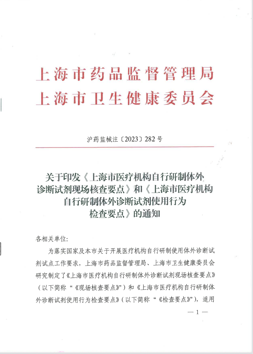 摘要: 上海发布LDT现场核查要点、LDT使用行为检查要点