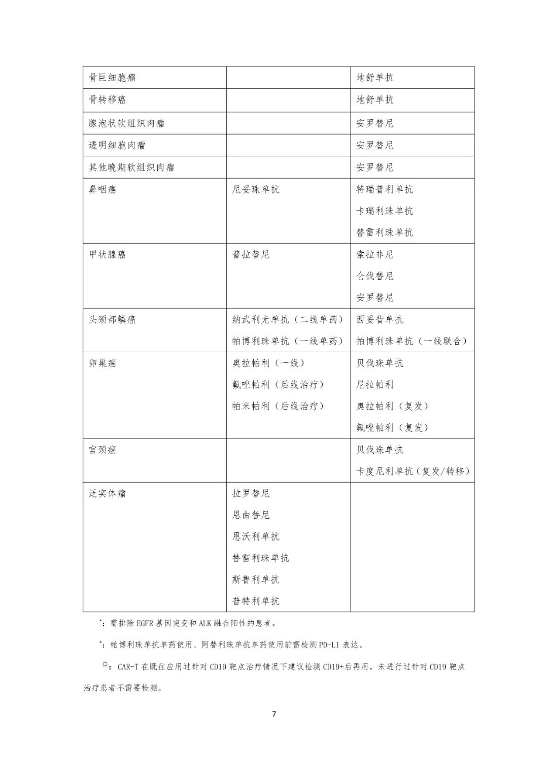 随着临床肿瘤学和循证医学的快速发展,新型抗肿瘤药物陆续获得批准上市,而与之相应的监管措施也在同步加强。自2018年起,国家卫健委已连续六年发布《新型抗肿瘤药物临床应用指导原则》,为新型抗肿瘤药物的合理使用提供更为明确和科学的指导。 近日,国家卫健委发布《新型抗肿瘤药物临床应用指导原则(2023年版)》(以下简称《原则2023》)。《原则2023》指出,抗肿瘤药物的应用涉及临床多个学科,合理应用抗肿瘤药物是提高疗效、降低不良反应发生率以及合理利用卫生资源的关键,为规范新型抗肿瘤药物的临床应用,特制订新型抗肿瘤药物临床应用指导原则。 最新版的《原则2023》在2022年版基础上进行了更新完善,新增了部分药物,更新了部分药物的适应证或合理用药要点。其中,比较大的一个变化是新增了“泛实体瘤用药”部分,药物包括拉罗替尼、恩曲替尼、恩沃利单抗、替雷利珠单抗、斯鲁利单抗和普特利单抗,并指出,这些实体瘤药物均是需要靶点检测的药物。 ▲ 《原则2023》新增需靶点检测的泛实体瘤药物 泛实体瘤用药,顾名思义,就是指这些新型抗肿瘤药物并不局限于特定的肿瘤类型,而是在多种实体瘤中都展现出一定的疗效。无论肿瘤起源于体内的什么地方,也不管它是从什么类型的组织发展起来的,当肿瘤具有药物靶向的非常特定的分子变异或预测药物可能有效时,就可以使用这种类型的治疗。 (1)拉罗替尼(Larotrectinib):适用于符合下列条件的实体瘤成人和儿童患者:经充分验证的检测方法诊断为携带神经营养酪氨酸受体激酶(NTRK) 融合基因且不包括已知获得性耐药突变, 患有局部晚期、 转移性疾病或手术切除可能导至严重并发症的患者,以及无满意替代治疗或既往治疗失败的患者。需要检测靶点:NTRK融合基因(且不包括已知获得性耐药突变)。 (2)恩曲替尼(Entrectinib):适用于符合下列条件的实体瘤成人和12岁及以上儿童患者,经充分验证的检测方法诊断为NTRK融合基因且不包括已知获得性耐药突变,患有局部晚期、转移性疾病或手术切除可能导至严重并发症的患者,无满意替代治疗或既往治疗失败的患者。需要检测靶点:NTRK融合基因(且不包括已知获得性耐药突变)。