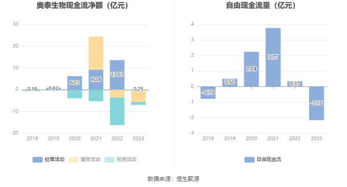 奥泰生物表示,2020年至2022年,公司经营业绩大幅增长主要来源于新冠检测产品销售相关业务的突发增长,未来公司的整体经营业绩与新冠疫情期间相比面临销售业绩大幅度下滑的风险。 分产品来看,2023年公司主营业务中,传染病类收入2.75亿元,占营业收入的36.48%;毒品及药物滥用类收入2.04亿元,占营业收入的27.00%;新冠检测类收入0.89亿元,占营业收入的11.80%。 以4月26日收盘价计算,奥泰生物目前市盈率(TTM)约为32.93倍,市净率(LF)约为1.55倍,市销率(TTM)约为7.88倍。 公司近年市盈率(TTM)、市净率(LF)、市销率(TTM)历史分位图如下所示: 数据统计显示,奥泰生物近三年营业总收入复合增长率为-12.73%,在体外诊断行业已披露2023年数据的29家公司中排名第23。近三年净利润复合年增长率为-35.70%,排名20/29。 截至2023年末,公司员工总数为1093人,2022年员工总数为1244人,减员151人,2023年人均创收69.05万元,人均创利16.52万元,人均薪酬15.53万元,较上年同期分别下降74.65%、82.66%、0.80%。 2023年,公司毛利率为48.78%,同比下降11.15个百分点;净利率为23.89%,较上年同期下降11.09个百分点。从单季度指标来看,2023年第四季度公司毛利率为51.28%,同比上升24.16个百分点,环比上升0.42个百分点;净利率为40.58%,较上年同期上升86.89个百分点,较上一季度上升22.90个百分点。 分产品看,传染病类、毒品及药物滥用类、新冠检测类2023年毛利率分别为45.35%、61.13%、54.81%。 报告期内,公司前五大客户合计销售金额1.46亿元,占总销售金额比例为19.38%,公司前五名供应商合计采购金额0.48亿元,占年度采购总额比例为29.24%。 数据显示,2023年公司加权平均净资产收益率为4.52%,较上年同期下降27.12个百分点。公司2023年投入资本回报率为3.68%,较上年同期下降26.89个百分点。 2023年,公司经营活动现金流净额为2476.37万元,同比下降98.18%;筹资活动现金流净额-5.59亿元,同比减少1.97亿元;投资活动现金流净额-1.41亿元,上年同期为-12.64亿元。 进一步统计发现,2023年公司自由现金流为-2.16亿元,上年同期为0.35亿元。 2023年,公司营业收入现金比为103.30%,净现比为13.71%。 营运能力方面,2023年,公司公司总资产周转率为0.17次,上年同期为0.78次(2022年行业平均值为0.60次,公司位居同行业13/38);固定资产周转率为3.02次,上年同期为19.41次(2022年行业平均值为5.40次,公司位居同行业4/38);公司应收账款周转率、存货周转率分别为6.30次、2.02次。 2023年,公司期间费用为1.99亿元,较上年同期减少1.66亿元;但期间费用率为26.30%,较上年同期上升15.54个百分点。其中,销售费用同比下降53.91%,管理费用同比下降14.7%,研发费用同比下降41.55%,财务费用由去年同期的-7092.70万元变为-5853.55万元。 资产重大变化方面,截至2023年年末,公司在建工程较上年末增加1054.30%,占公司总资产比重上升10.96个百分点;货币资金较上年末减少33.52%,占公司总资产比重下降10.20个百分点;交易性金融资产较上年末减少19.72%,占公司总资产比重下降3.29个百分点;其他流动资产较上年末增加536.78%,占公司总资产比重上升1.29个百分点。 负债重大变化方面,截至2023年年末,公司合同负债较上年末减少71.73%,占公司总资产比重下降2.13个百分点;应付账款较上年末减少54.66%,占公司总资产比重下降1.76个百分点;应交税费较上年末减少23.54%,占公司总资产比重下降0.29个百分点;其他流动负债较上年末减少98.58%,占公司总资产比重下降0.24个百分点。 从存货变动来看,截至2023年年末,公司存货账面价值为1.89亿元,占净资产的4.93%,较上年末减少506.51万元。其中,存货跌价准备为5357.36万元,计提比例为22.F。 2023年全年,公司研发投入金额为1.21亿元,同比下降41.55%;研发投入占营业收入比例为16.06%,相比上年同期上升9.94个百分点。 年报称,2023年度,公司新增授权专利/软件著作权共37项,其中发明专利1项,实用新型专利18项,外观设计专利16项,软件著作权2项。截至2023年底,公司累计获得授权专利/软件著作权158项,其中发明专利29项、实用新型专利65项、外观设计专利60项和软件著作权4项。 在偿债能力方面,公司2023年年末资产负债率为6.91%,相比上年末下降4.26个百分点;有息资产负债率为0.39%,相比上年末上升0.21个百分点。 2023年,公司流动比率为11.53,速动比率为10.84。 年报显示,2023年年末公司十大流通股东中,新进股东为上证红利交易型开放式指数证券投资基金、国泰致远优势混合型证券投资基金、招商银行(34.480, 0.08, 0.23%)股份有限公司-国泰价值优选灵活配置混合型证券投资基金(LOF)、香港中央结算有限公司,取代了三季度末的国泰佳泰价值平衡股票型养老金产品-中国建设银行(7.120, -0.12, -1.66%)股份有限公司、姜正金、宓莉、国泰医药健康股票型证券投资基金。在具体持股比例上,宁波文叶创业投资合伙企业(普通合伙)、国泰江源优势精选灵活配置混合型证券投资基金持股有所上升。 筹码集中度方面,截至2023年年末,公司股东总户数为5949户,较三季度末下降了1647户,降幅21.68%;户均持股市值由三季度末的64.39万元上升至91.42万元,增幅为41.98%。 指标注解: 市盈率=总市值/净利润。当公司亏损时市盈率为负,此时用市盈率估值没有实际意义,往往用市净率或市销率做参考。 市净率=总市值/净资产。市净率估值法多用于盈利波动较大而净资产相对稳定的公司。 市销率=总市值/营业收入。市销率估值法通常用于亏损或微利的成长型