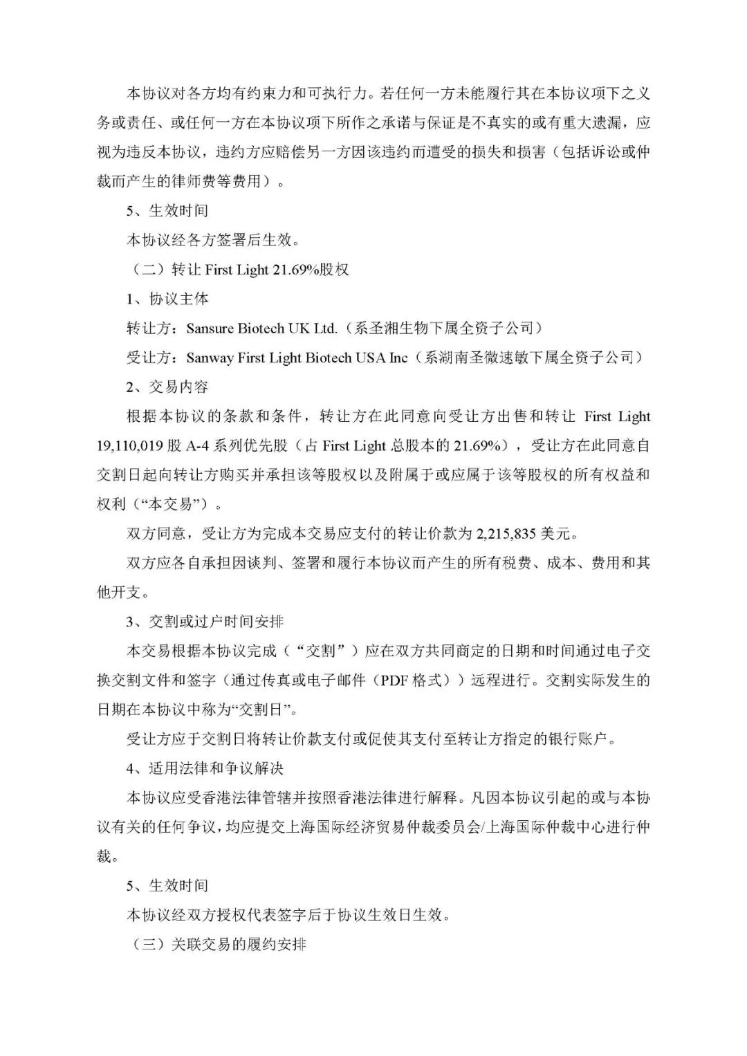 | 圣湘生物5月8日公告,公司拟与关联方湖南湘江圣湘生物产业基金合伙企业(有限合伙)共同投资合资公司湖南圣微速敏生物科技有限公司,其中,公司合计投资金额为5333万元。同时,公司拟将参股公司FirstLight 21.69%的股权转让至合资公司下属全资子公司,转让对价为221.58万美元。后续将依托合资公司作为整体运营,进一步聚焦于快速药敏检测领域,加速促进产业研究、应用开发及商业转化。