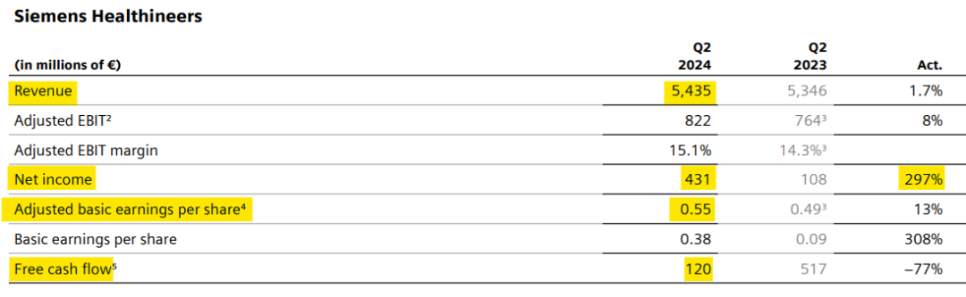 2024年5月8日,西门子医疗发布了截至2024年3月31日的2024财年第二季度业绩报告,总体销售额为54亿欧元(合约419.3亿人民币),可比营收增长3%。净利润为4.31亿欧元(合约33.47亿人民币)。