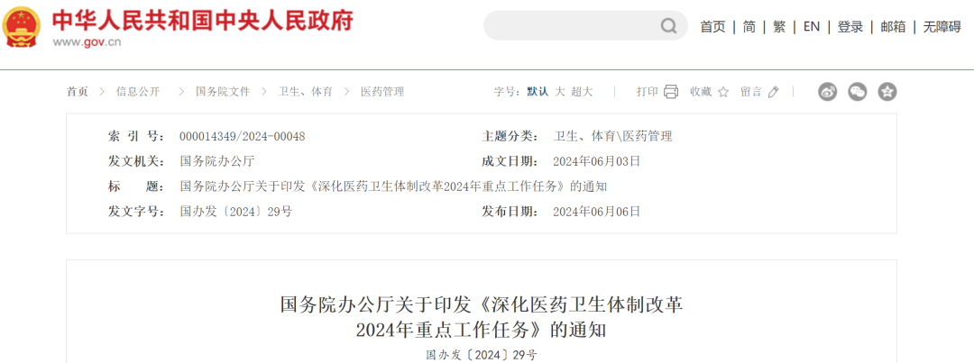 2024年医药卫生体制改革重点公布:第五批耗材国采、创新药械、医保支付、医疗反腐..... 01 第五批耗材国采临近 强化集采执行监管 6月6日,国务院办公厅发布《深化医药卫生体制改革2024年重点工作任务》的通知(以下简称《任务》。 《任务》明确,要开展新批次国家组织药品和医用耗材集中带量采购,对协议期满批次及时开展接续工作。 2024年各省份至少开展一批省级(含省际联盟)药品和医用耗材集采,实现国家和省级集采药品数合计达到500个、医用耗材集采接续推进的目标。 进一步加强集采执行工作,落实集采医保资金结余留用政策,完善激励约束机制,促进医疗机构如实填报采购量并合理优先使用中选产品。 加强集采中选药品和医用耗材质量监管。完善提升医药集采平台功能,加强网上采购监督,提高药品和医用耗材网采率。 截至目前,第四批国采(人工晶体和运动医学)已经进入落地执行阶段。昨日(6月6日),国家组织高值医用耗材联合采购办公室发文,将开展人工耳蜗类医用耗材信息集中维护工作,虽然第五批针对的品类尚未明确,但新批次国采启动的前奏已来临。 伴随医改深入,耗材集采的覆盖范围持续扩大,采购方式也迎来全面升级。 根据近期发布的《国家医疗保障局办公室关于加强区域协同做好2024年医药集中采购提质扩面的通知》,省级联盟采购要进一步加强全国面上协同,条件具备的提升为全国性联盟采购,国家医保局明确将重点指导的七大耗材品种如下: 02 加快创新药械审批 全面实施三类器械实名制 加快创新药、罕见病治疗药品、临床急需药品等以及创新医疗器械、疫情防控药械审评审批。 近期,多地发布有关创新药械审评审批的利好措施。以北京为例:对创新医药企业实施重点项目制管理机制,在注册申报、许可办理等方面“一品一策”、提前介入、全程指导,对创新医疗器械企业的审评服务前置。 此外,《任务》要求全面实施第三类医疗器械(含体外诊断试剂)唯一标识。 自2022年6月开始,第三类医疗器械(含体外诊断试剂)已全部纳入第二批实施唯一标识范围。从今年6月1日起,部分临床需求量较大的一次性使用产品、集中带量采购中选产品、医疗美容相关产品等部分第二类医疗器械作为第三批医疗器械唯一标识实施品种。 共有103种医疗器械被新纳入此次唯一标识实施工作,包括超声手术设备、激光手术设备及附件、高频/射频手术设备及附件、内窥镜手术用有源设备、神经和心血管手术器械-心血管介入器械、骨科手术器械、诊断X射线机、光治疗设备、起搏系统分析设备、注射泵、临床检验器械等。 03 研究创新药械DRG/DIP除外支付 2024年所有统筹地区开展按疾病诊断相关分组(DRG)付费或按病种分值(DIP)付费改革,合理确定支付标准并建立动态调整机制。对紧密型医疗联合体实行医保总额付费,完善总额测算、结余留用和合理超支分担机制。 研究对创新药和先进医疗技术应用给予在DRG/DIP付费中除外支付等政策倾斜。 日前,北京、上海、广州等先后发布针对创新医疗器械高质量发展的相关举措。根据《北京市支持创新医药高质量发展若干措施(2024年)》,创新医疗器械涉及的诊疗项目,不受医疗机构总额预算指标限制。 广州市会及时将创新药械、医疗技术按规定纳入本市医保支付范围,其费用在医保考核评价指标中会被剔除。 在创新药械的进院渠道不断被打通下,本土品牌的创新成效将加快显现。 04 医疗腐败全链条整治 核查高费用和异常费用病例 在2024年的医改重点任务中,针对医药卫生领域综合监管的内容如下: 扎实做好全国医药领域腐败问题集中整治工作,深化体制机制改革,加强廉政建设,持续推进全链条全要素全覆盖治理。 开展高费用和异常费用病例核查工作。探索运用穿透式监管,改进监管效果。研究出台医药企业防范商业贿赂合规指引。 完善医保基金飞行检查工作机制,建立“回头看”机制。制定促进和规范民营医院发展的政策。 近日,国家十四部委联合发布《关于印发2024年纠正医药购销领域和医疗服务中不正之风工作要点的通知》,要求聚焦“关键少数”和关键岗位人员,深化“风腐一体”治理,紧盯具体问题持续加压发力。 今年4月,2024全国医保专项整治已正式启动,聚焦纠治一体,对骨科、血透、心内、检查、检验、康复理疗等重点领域,全面开展自查自纠,持续推进问题整改。 5月11日,2024年国家医疗保障基金飞行检查首场启动会在河南省郑州市召开,此次飞检涉及九大重点领域。 聚焦重症医学、麻醉、肺部肿瘤等领域,查处违法违规使用医保基金行为,重点查处欺诈骗保问题;聚焦心血管内科、骨科、血液净化、康复、医学影像、临床检验等以前年度已经重点检查并自查自纠的领域,检查是否按要求自查整改。 多项纠风监管措施同步出手,2024医药反腐仍将保持高压态势,药械流通环节中的违规行为将受到严格约束。 附全文: |