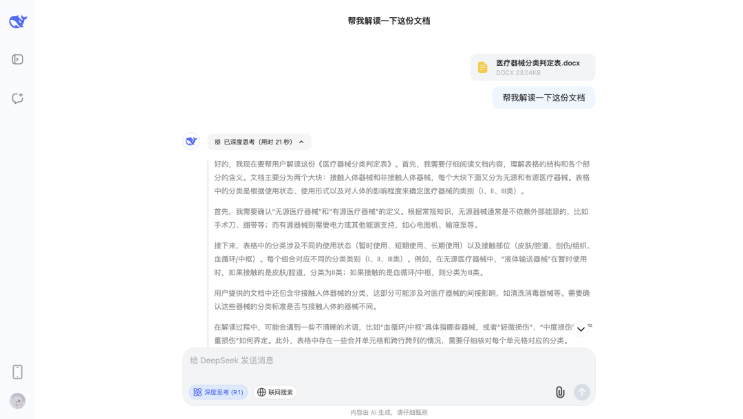 一、引言 随着人工智能技术的飞速发展,其在医疗领域的应用日益广泛,医疗器械注册过程也逐渐引入了 AI 技术以提高效率和质量。DeepSeek 作为一种先进的 AI 模型,在医疗器械注册中展现出了巨大的潜力和价值。 二、DeepSeek 概述DeepSeek 是由深度求索公司研发的人工智能模型,具有知识密度优化、推理能力增强和训练成本优势等特点。例如,其蒸馏版本 DeepSeek-R1-Distill-Llama-8B 在保留原版 16B 模型 97% 性能的同时,参数量压缩至 8B 级别,并且在 MedQA-USMLE 等医学基准测试中,诊断准确率提升 12.7%。 三、医疗器械注册流程及痛点医疗器械注册通常包括技术评估、临床试验、法规合规、注册申报等多个环节。在这个过程中,存在一些痛点,如大量的数据需要处理和分析、法规要求的复杂性、临床试验的设计和评估等,这些都可能导至注册周期长、成本高和风险大。 四、DeepSeek 在医疗器械注册中的具体应用(一)技术评估1、数据分析与挖掘 DeepSeek 可以对医疗器械的技术原理、性能指标、安全性和有效性等方面的数据进行深度分析和挖掘,帮助注册人员快速了解产品的技术特点和优势。 2、技术文档生成 基于其强大的语言生成能力,DeepSeek 能够根据输入的技术参数和要求,自动生成技术文档的初稿,提高文档撰写的效率和质量。 (二)临床试验1、试验设计优化 通过分析大量的临床数据和文献,DeepSeek 可以为临床试验的设计提供优化建议,包括试验方案的制定、样本量的计算、对照组的选择等,提高试验的科学性和可靠性。 2、数据监测与分析 在临床试验过程中,DeepSeek 可以实时监测试验数据,及时发现异常情况并进行预警。同时,它还可以对试验数据进行深度分析,挖掘数据中的潜在规律和趋势,为试验结果的评估提供有力支持。 (三)法规合规1、法规解读与咨询 DeepSeek 能够对医疗器械注册相关的法规、标准和指南进行准确解读,并为注册人员提供法规咨询和指导,确保注册过程符合法规要求。 医疗器械分类判定表源文件 图源:DeepSeek网页版 2、合规性评估 通过对产品信息和注册资料的分析,DeepSeek 可以自动评估产品的合规性,及时发现潜在的合规风险,并提出相应的整改建议。 (四)注册申报1、申报材料准备 DeepSeek 可以协助注册人员准备申报材料,包括撰写申报文档、整理技术资料、制作演示文稿等,提高申报材料的完整性和规范性。 2、申报流程管理 利用其智能流程管理功能,DeepSeek 能够对注册申报流程进行跟踪和管理,及时提醒注册人员完成各项任务,确保申报过程的顺利进行。 五、DeepSeek 在医疗器械注册中的优势1、提高效率 DeepSeek 的自动化和智能化功能可以大大缩短医疗器械注册的时间,提高注册效率。 2、降低成本 通过优化注册流程和减少人工干预,DeepSeek 可以降低医疗器械注册的成本。 3、提升质量 DeepSeek 的数据分析和挖掘能力可以提高注册资料的质量和准确性,从而提升医疗器械注册的成功率。 六、面临的挑战与解决方案1、数据安全与隐私保护 在医疗器械注册过程中,涉及大量的敏感数据,如患者信息、企业商业机密等。DeepSeek 需要加强数据安全和隐私保护措施,确保数据的合法合规使用。 2、模型可靠性与可解释性 DeepSeek 的决策过程和结果需要具有可靠性和可解释性,以便注册人员能够理解和信任其输出。为此,需要对模型进行严格的验证和评估,并提供相应的解释工具和方法。 七、结论DeepSeek 在医疗器械注册中具有广泛的应用前景和重要的价值,可以为注册人员提供有力的支持和帮助。随着技术的不断发展和完善,DeepSeek 将在医疗器械注册领域发挥越来越重要的作用,推动医疗器械行业的创新发展。 在医疗器械注册工作中,还可以用DeepSeek帮助做什么事情呢?欢迎留言交流讨论。 |