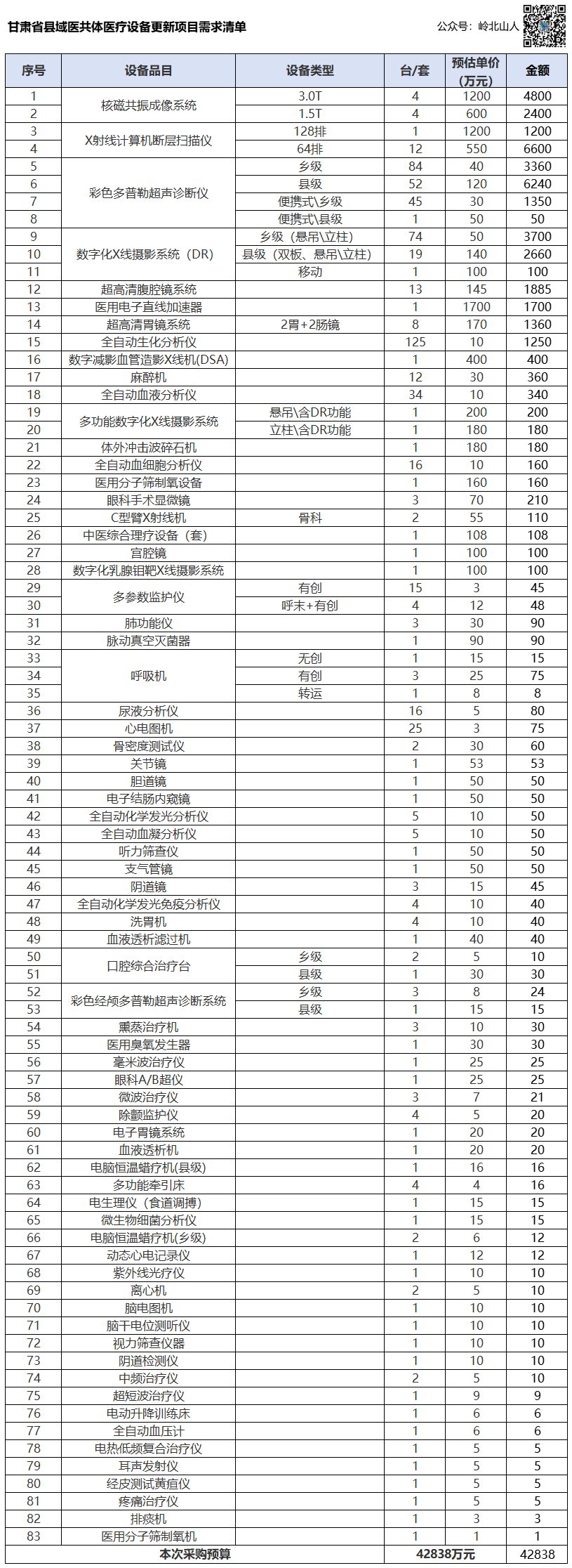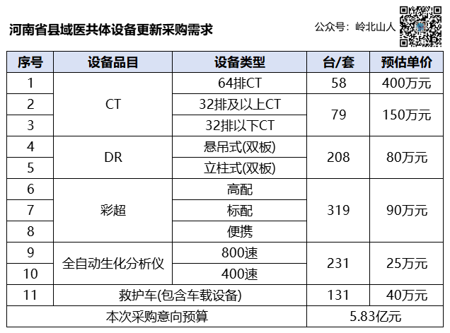 近期,关于医疗设备更新及医共体设备的集中采购,大面积发布公告,从高端影像设备到低端检验设备,涵盖范围非常广泛。可以说,从检验试剂带量采购后,检验设备也面临的集采的趋势。