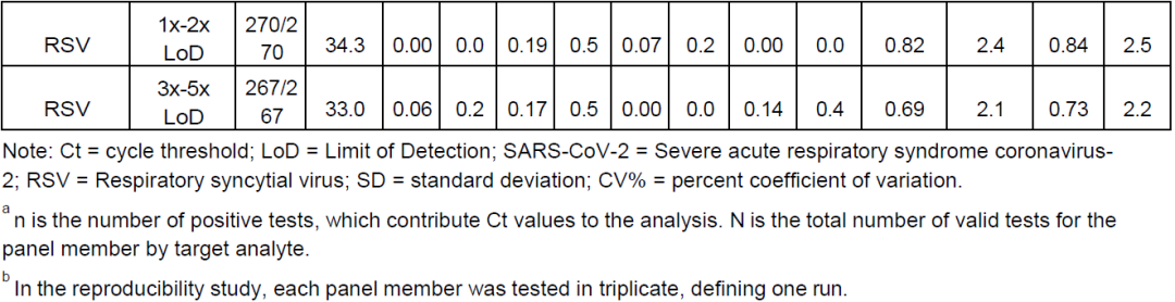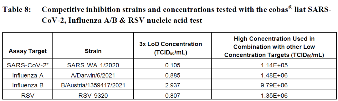 此外,还对高滴度潜在交叉反应微生物进行了交叉反应性测试,并在存在SARS-CoV-2、甲流、乙流和RSV(浓度为3倍LoD)的情况下进行微生物干扰测试。