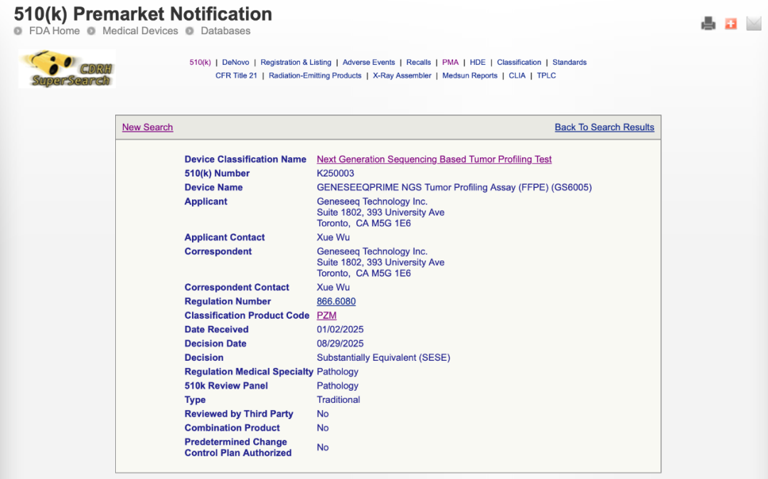 更多详细信息还得再等几天 “这速度,很可以了” 相信大家都看到了世和大panel在FDA获批的新闻。 恭喜世和,是个好消息。 有不少朋友好奇这个产品在FDA是怎么获批的,借着官方信息我们简单聊两句。 1. 510k,II类 从FDA的官方信息来看,Geneseeq PRIME是走的510k审批路径,设备类型是Next Generation Sequencing Based Tumor Profiling Test。 和PMA路径的最大区别是,510k大概率不涉及到伴随诊断,仅做性能验证。 其预期用途是一个定性的体外诊断检测: 可以理解成425个基因(包括MSI+TMB)都是NMPA定义下的二级位点——或者NMPA没有定义过的三级位点。 这确实是中美审批原则上的巨大差异,NMPA既不接受肿瘤NGS试剂盒作为二类,也不会接受肿瘤NGS试剂盒不包含一级位点(不管是伴随诊断、补充诊断还是辅助诊断)。 走510k这条路径中我们最耳熟能详的产品是MSKCC-IMPACT,也是首个获批的大panel。 510k的审批逻辑是找一个“可比产品(predicate device)”,证明申报产品与这个已经获批的产品“等效”(substantially equivalent)。 世和的官方消息说PRIME不是single-site而是试剂盒,所以我们盲猜是选了下面这个产品来对比 PGDx elio,505基因(包括了MSI+TMB),试剂盒 *这个试剂盒也是510k路径获批,当年选的predicate device是MSK-IMPACT 最后的谜底可以等到FDA公开Decision Summary的时候揭晓——类似于CMDE的审评报告。 一般会在获批后3-6周发布~我们持续关注。 2. 中美双报 这个试剂盒对世和最大的帮助是承接药企合作的生意——全球多中心临床。 理论上可以做到一个试剂盒同步完成一款药物的中美伴随诊断。 考虑到Foundation One和Guardant 360在国内无法获批,Geneseeq prime确实可以说是当前的独一份。 当然要迈过的坎也不少,比如: 510k路径下获批的NGS试剂盒目前还没有成功添加CDx label的先例、PRIME如何在美国本土F1CDx的“垄断”和G360 tissue的“崛起”下完成商业化布局,以及是否能够为国内的TMB试剂盒增加CDx label。 但这都是后话,路总是一步一步走的,走了第一步才能去想后两步。 3. 加鸡腿 510k的申请一般分几个阶段: 受理审查(Acceptance review)、实质性审查(Substantive Reive)、最终审查(Interactive review) 虽然FDA的承诺/目标是90个工作日左右(大约120天)完成审查,但这个过程中免不了会遇到FDA要求补充信息。 所以通常6-9个月的时间是需要的。 以前面提到的PGDx elio为例,从accept到最终获批花了大约9个月。 世和的PRIME递交是今年的1月2号,获批是8月29号,总共不到8个月。 这注册效率,是真不错。 这鸡腿,至少得加两。 |