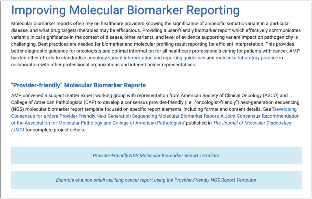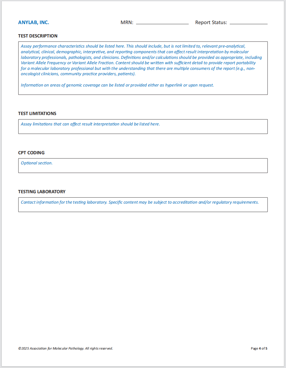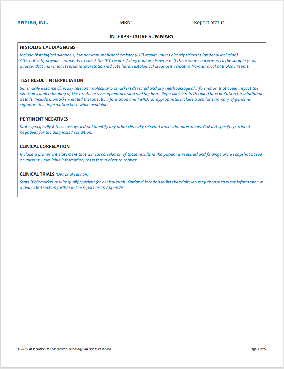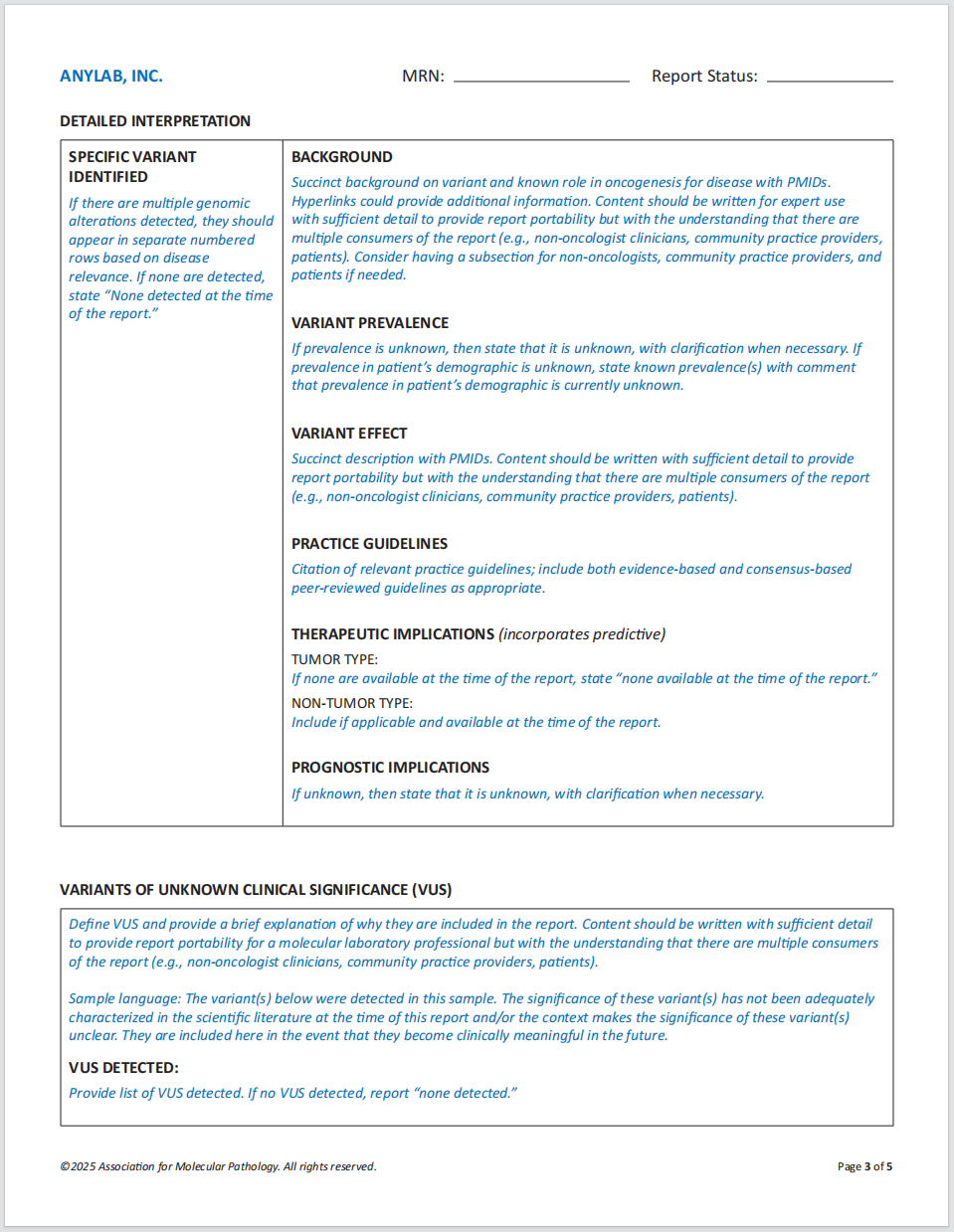 参考资料: https://www.amp.org/clinical-practice/improving-molecular-biomarker-reporting/ https://www.jmdjournal.org/article/S1525-1578(25)00224-7/fulltext