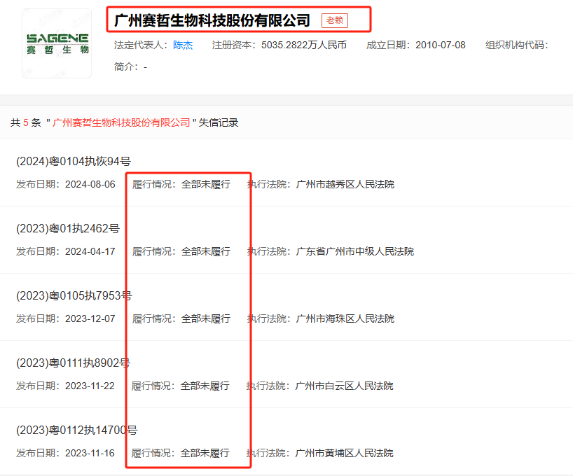 据天眼查数据显示,赛哲生物从23年-24年的案件全部未执行,更是被天眼查打上了“老赖”的标签!