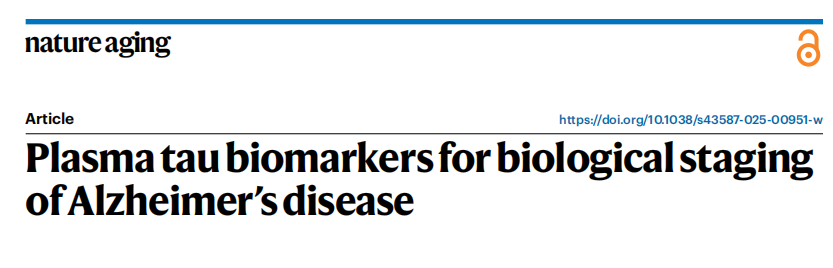 近日,杂志nature aging上发表了一篇题为“Plasma tau biomarkers for biological staging of Alzheimer’s disease”的文章。作者利用了靶向质谱(MS)方法,系统地量化了多种磷酸化和非磷酸化的血浆tau蛋白,并评估了它们对疾病分期的能力。研究结果表明,血浆tau生物标志物可以准确地分期AD,为确定临床诊断和影像学分期,以及预测纵向tau- PET积累,神经变性和认知能力下降提供了有价值的见解。这些发现将增强血液tau生物标志物的潜在应用,改善临床试验和常规临床实践中的患者管理。