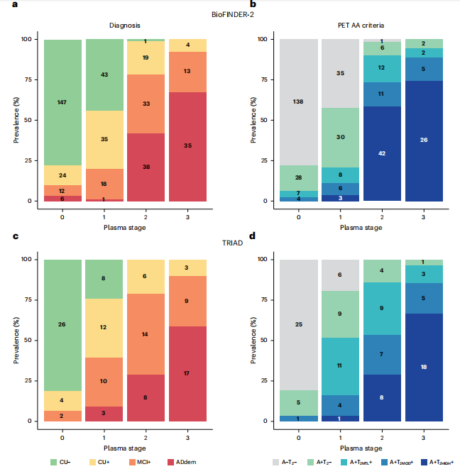 这些结果在TRIAD队列的临床诊断(图c)和PET AA标准(图d)中得到了重复。