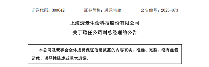 2025年10月22日,上海透景生命科技股份有限公司(证券代码:300642,证券简称:透景生命)今日发布公告称,公司于第四届董事会第十四次会议审议通过,正式聘任陈刚先生担任公司副总经理,任期自董事会审议通过之日起至第四届董事会届满时止。陈刚先生目前为透景生命控股子公司武汉康录生物技术股份有限公司的创始人、股东及总经理。此次任命由公司总经理姚见儿先生提名,并经董事会提名委员会事前资格审核通过,体现了公司对其专业能力与管理经验的充分肯定。根据公告附件披露的简历,陈刚先生出生于1966年10月,毕业于武汉大学,拥有硕士学位,为中级工程师。他在医药与医疗器械领域拥有近三十年的从业经验,曾于1997年7月至2012年12月期间服务于武汉人福医药集团股份有限公司,负责多家子公司的创建及中药、器械与商业板块的管理工作,具备全面的企业运营与战略规划能力。自2013年2月起,陈刚先生投身于武汉康录生物技术有限公司(后于2016年6月改制为股份有限公司),担任总经理至今。在此期间,他带领公司稳步发展,并于2017年7月起兼任武汉康录医学检验实验室有限责任公司的执行董事、经理及法定代表人,进一步拓展公司在医学检验领域的影响力。陈刚先生在中国医学装备协会病理装备分会、中国非公立医疗机构协会病理学专委会及湖北省药物与医疗器械临床评价学会等多家行业组织中担任常务委员或常务理事职务,显示出其在专业领域的广泛认可与影响力。公告强调,陈刚先生具备与其行使职权相适应的任职条件,符合《公司法》《深圳证券交易所上市公司自律监管指引第2号——创业板上市公司规范运作》及《公司章程》中关于高级管理人员的任职要求。其与公司控股股东、实际控制人及其他董监高不存在关联关系,亦未持有公司股份,且无任何不良诚信记录或受到监管处罚的情形。分析认为,此次任命是透景生命在整合子公司资源、强化集团化管理方面的重要一步。陈刚先生作为武汉康录的核心创始人及管理者,其升任母公司副总经理,有望进一步推动母公司与子公司之间的战略协同与技术融合,提升整体运营效率与市场竞争力。透景生命表示,此次高管聘任将有助于公司优化管理结构,增强核心团队的行业经验与执行力,为公司在生命科技领域的持续发展注入新的动力。 |
