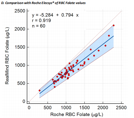 仁迈的红细胞叶酸检测结果在95%的分析样本中与参考范围呈现完全临床一致性。