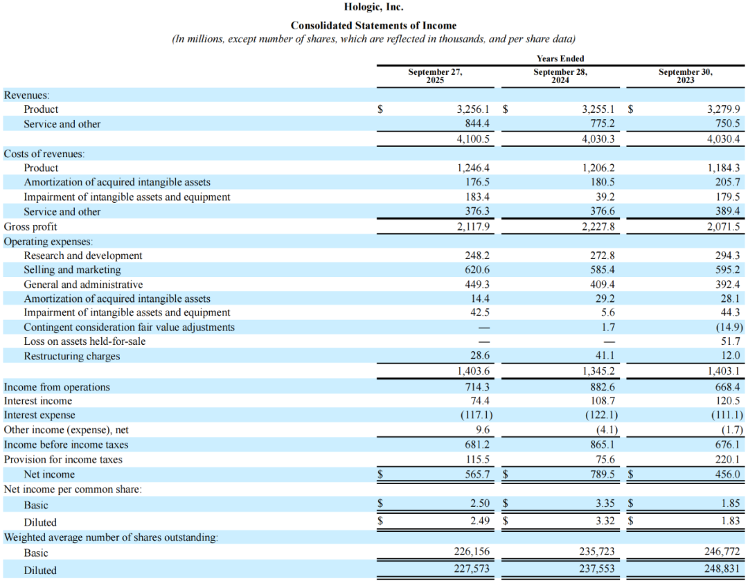 2025财年,Hologic总营收41.005亿美元(约291.36亿元人民币),同比增长1.74%,净利润5.657亿美元(约40.20亿元人民币),同比下跌28.35%。 中国区承压,开启裁员 中国区在2025财年遭遇的,不是单一变量,而是多因素共振。 核心产品在华销量下滑,亚太占比下降,主要由于中国市场ThinPrep宫颈涂片检测、HPV检测试剂以及3D Dimensions系统销量下降。 外部环境的不确定性,销量下滑与“中美贸易战及其他影响销售的中国相关政策”相关,中国监管解释与执行存在较大裁量空间,合规不确定性上升。 组织动作已落地,说明公司选择“先止血、再重建”。在2025财年第三季度,公司在中国进行组织重整并降本,裁撤89名员工(以销售为主),并确认430万美元(约3055万元人民币)离职补偿费用,人均34.3万元离职赔偿,且该行动在当季完成。 中国区的瓶颈更像是一道“组合题”:既有需求侧的阶段性回落,也有政策与合规的结构性压力,更有渠道与商业执行的再适配。 短期看会影响节奏,但长期看,恰恰倒逼公司把“产品导向”升级为“体系导向”,在定价、渠道、合规与本地化交付上做更深的重塑。 豪洛捷(HOLOGICGen-Probe),成立于1985年,总部位于美国马萨诸塞州波士顿市。该公司主要业务为医疗、诊断及为女性健康提供全方位解决方案。代表产品有Selenia Dimensions数字乳腺X射线摄影系统、NovaSure®诺舒阻抗控制子宫内膜去除系统。 豪洛捷在为女性健康服务的技术领域中位于世界前列,包括:乳腺癌的诊断与治疗、宫颈癌筛查、产前检测和骨质疏松症检测。HOLOGIC公司分为:诊断、乳腺健康、妇科手术和骨骼健康四个事业部。公司在HPV检测方面占据领先地位,与耳熟能详的Roche、Qiagen为并排前三。 HOLOGIC Gen-Probe致力于全球快速、精确、高效分子诊断产品及服务业的开发、制造及销售,其产品重点用于疾病诊断、血液筛查,并确保移植兼容性,以期通过早期检验筛查,提高早期诊断和微创治疗水平,及时挽救生命。 |