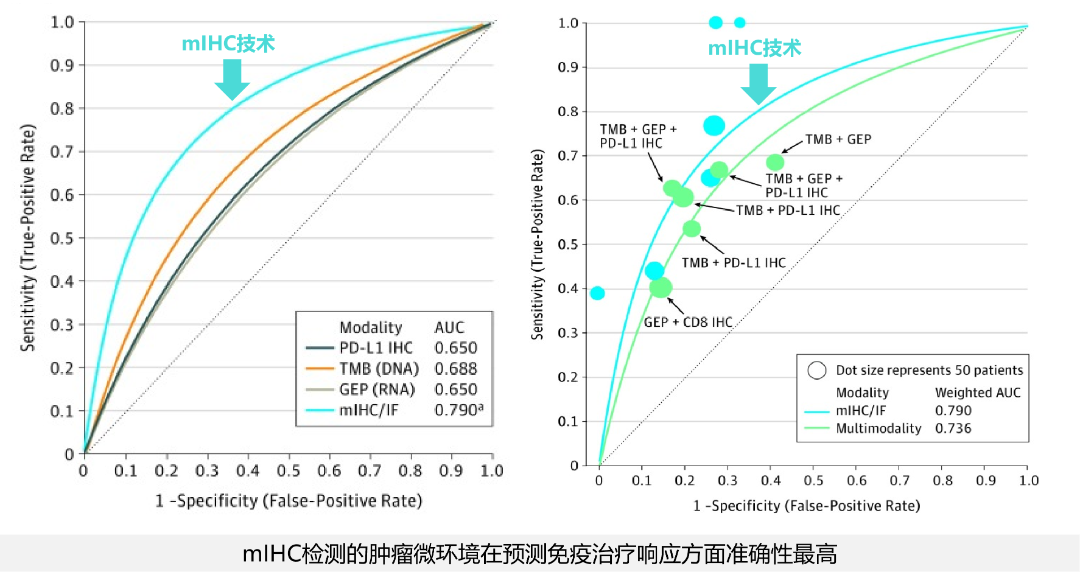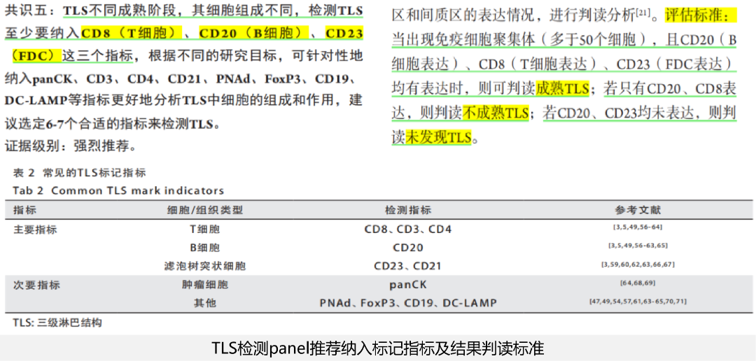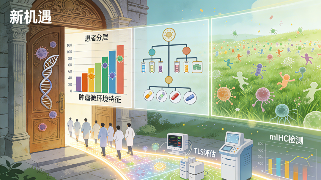 肿瘤微环境中出现了一类新的生物标志物,即空间表型特征,其通过mIHC技术可在一张组织切片上同时检测多种蛋白,全景展示肿瘤免疫微环境以及细胞间原位空间信息,解决了当前免疫治疗预测中尚未充分满足的临床需求。 免疫治疗, 为无数肿瘤患者带来了新希望。 但一个冰冷的现实是: 平均响应率, 仍徘徊在20%~30%之间。 这意味着, 大部分患者满怀期待, 却可能等不到想要的疗效。 为什么? 问题可能出现在“路标”上。 01 当前的“路标”,还不够准 我们依靠生物标志物来指路, 告诉医生,患者是否适合免疫治疗。 最常用的“路标”,是 PD-L1。 然而,这个指标并不完美。 PD-L1阳性的患者, 响应率大约在40%。 但令人困惑的是, PD-L1阴性的患者, 也有约13%的响应机会。 这个“路标”, 漏掉了一些本该获益的人, 也错误地指引了部分无效的患者。 另一个被看好的“路标”, 是 TMB(肿瘤突变负荷)。 情况类似: TMB高的患者响应率约40%, TMB低的患者也有约20%可能有效。 FDA批准的这些“路标”, 显然不够完美和精准。 我们迫切需要一张更精准的“作战地图”。 一张理想的“作战地图”应该能: 让有效者清晰显现(阳性响应率>80%), 让无效者提前规避(阴性响应率<5%)。 这张地图在哪? 答案,藏在肿瘤的内部世界里。 02 肿瘤内部,有一个被忽略的“指挥部” 肿瘤不是一团简单的癌细胞。 它内部是一个复杂的“社会”, 称为 肿瘤微环境(TME)。 这里有癌细胞、免疫细胞、 成纤维细胞及肿瘤血管系统等。 它们相互作用,共同决定战局。 在这个微环境里, 近年发现了一个关键角色: 三级淋巴结构(TLS) 。 你可以把它理解为, 免疫系统在肿瘤前线建立的 一个“前沿作战指挥部”。 它既非胸腺、骨髓这类“中央军校”(初级淋巴器官), 也非脾脏、淋巴结这类“常驻兵站”(二级淋巴器官)。 TLS,是就地组建的“战时指挥部”(三级淋巴器官) , 由T细胞、B细胞、树突状细胞等精锐部队组成, 与淋巴组织有相似的结构和功能。 结构成熟时, 内部还会有“作战情报中心”,即生发中心。 它的存在,意味着免疫系统 不仅发现了敌人, 而且正在前线高效地组织反击。 大量研究证实, 肿瘤中存在TLS,尤其是成熟TLS的患者, 预后更好,对免疫治疗的反应也更强。 TLS,很可能就是那个 我们寻找的更精准的 “路标” 。 03 从“点”到“面”,技术的飞跃 既然TLS如此重要, 我们该如何看见它、评估它? 传统病理技术,像是举着一个“手电筒”。 一次只能照亮一个点(比如CD8+T细胞), 难以准确评估多指标间的表达关系, 看不清细胞之间的布局和协作关系。 而现代技术,已经可以打开“全景天窗” 。 这就是多重荧光免疫组化(mIHC)技术 。 mIHC能在同一张组织切片上, 同时给3-9种蛋白标记不同的颜色, 再结合计算机辅助图像分析, 让我们能一眼看清: T细胞在哪、B细胞在哪、 滤泡树突状细胞在哪, 它们是否聚集成了TLS, 这个TLS结构是否成熟…… 从静态的“蛋白表达量”, 升级为动态的“细胞空间关系”。 这正是肿瘤微环境检测的核心优势。 一项发表在《JAMA Oncology》上的大型研究, 分析了超过8,000名癌症患者的样本。 结果明确显示: mIHC技术预测免疫治疗反应的准确性(AUC=0.79), 显著高于单独使用PD-L1(0.65)或TMB(0.69), 甚至比PD-L1+TMB联合预测(0.74)还要好。 科学证据已经指明, 看清微环境,才能更准确地预测疗效。 04 未来已来:共识引导的TLS临床应用 这种转变并非空想, 它正在迅速走入临床实践的视野。 2025年CSCO&CACA联合发布的 《肺癌TLS评估及临床应用中国专家共识》, 为TLS的检测与应用提供了权威指导。 共识推荐,检测TLS至少应评估: CD8(细胞毒性T细胞)、 CD20(B细胞)、 CD23(滤泡树突状细胞) 这三个关键指标。 根据CD8、CD20、CD23的表达情况, 可将TLS分为: 未发现TLS:CD20/CD23均未表达; 不成熟TLS:只有CD8/CD20表达; 成熟TLS:CD8/CD20/CD23均表达, 且出现免疫细胞聚集体(>50个细胞)。 其中成熟TLS是预测免疫治疗获益的关键指标。 这正是mIHC技术可以轻松实现的。 因此,《共识》强烈推荐, 有条件的医疗机构, 可使用mIHC定量分析TLS密度、大小和数量, 以及TLS中各类TILs组成及浸润丰度, 综合评估TLS是否存在及成熟度。 更令人振奋的是, TLS指标与PD-L1相互独立。 这意味着, 那些PD-L1阴性、 原本可能被放弃免疫治疗的患者, 只要肿瘤中存在成熟的TLS, 就很可能从治疗中获益。 这实实在在地 扩大了免疫治疗的受益人群 。 而对于没有TLS、 免疫细胞浸润少的“冷肿瘤”, 可以先通过联合治疗改造微环境, 再进行免疫治疗。 从PD-L1检测升级成TLS(含PD-L1)检测, 这就是精准医疗的进化之路。