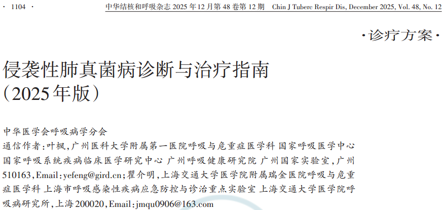 【指南与共识】侵袭性肺真菌病诊断与治疗指南(2025年版)第一期