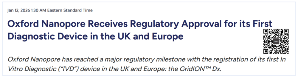 | 2026年1月12日,纳米孔测序仪公司Oxford Nanopore Technology(ONT)宣布:GridION Dx已获得CE和UKCA认证,成为该公司在英国和欧洲注册的首款IVD设备。这也是目前全球第一款获得CE+UKCA认证的IVD版纳米孔测序仪。事实上,如果只看CE认证,齐碳在2024年就拿到了QNome-3841和3841hex的CE认证了。很显然,副标题已经告诉了我们,这是GridION的Dx版本。GridION可以同时运行1-5张FC(Flow Cell),每张FC包含512条纳米通道。这显然不如PromethION的2675通道看起来强大啊。为啥不直接报PromethION呢?一个可能的原因是希望维持一个灵活性和容量的平衡,毕竟IVD产品的最大客户是医院。医院的样品来源是极其不稳定的,有可能是一天几个,也有可能是几十个。通过调配FC的数量,可以降低开机费用,这才是正解。你猜他为啥用纳米孔...不就是看中了速度快么...其实我们早就猜到了第一个机型可能是GridION,具体为什么往后看就知道了。是的,这次ONT推出IVD版纳米孔测序仪生物梅里埃就是受益人。“首个产品将与生物梅里埃(bioMérieux)合作推出,整合AmPORE-TB多重耐药结核病检测试剂盒,体现了这一战略布局。”事实上,这款AmPORE-TB多重耐药结核检测试剂盒已经以RUO(仅研究用)的形式推向市场一段时间了。以下信息均来自RUO版本试剂,IVD版可能有差异。AmPORE-TB由ONT开发,包含24个耐药相关基因的27个区域。对应16种药物的耐药,可以一次性在一张FC上完成22个样本+2个对照的检测,测序耗时约2小时。试剂盒采用locus-specific PCR(位点特异性PCR) 技术,配备96种Barcode。试剂盒检测的分析检出限(LoD)在使用两种推荐提取方法(手动与自动)时,以结核分枝杆菌变种牛型卡介苗(BCG)株加标痰液为样本,基于分子定量结果为 350 cfu/mL,基于菌落平板计数结果为 11.5 cfu/mL。大约在2025年1月份,来自中国成都的齐碳QNome-3841hex Dx拿到了中检院的检验报告。华大也不甘落后,在2025年7月左右华大序风CycloneSEQ-WT02(正式更名为“G100-E”)也拿到了中检院的检验报告。至此,中国第一个纳米孔测序跟中国第一个高通量纳米孔测序检验报告都集齐了。经常报IVD证的朋友们都知道,拿了中检院的报告就离下证不太远了(相对)。那就是臻熙贴牌ONT的Dgensee X5,这可是说要在2025年12月31日前拿到NMPA医疗器械注册证的先驱。只是,我好像没查到臻熙拿证的消息,麻烦各位大佬评论区指下路。不过,臻熙之所以要用Dgensee X5去报证,那ONT就是要报GridION的IVD。感染领域,用纳米孔测序是个非常好的切入口,相信越来越多的产品会加入战团。注1:https://www.businesswire.com/news/home/20260111466198/en/Oxford-Nanopore-Receives-Regulatory-Approval-for-its-First-Diagnostic-Device-in-the-UK-and-Europe注2:https://www.biomerieux.com/corp/en/our-offer/clinical-products/ampore-tb.html注3:https://a.storyblok.com/f/196663/x/01a3dbcbf5/ampore-tb_ruo_protocol_rev3.pdf注4:https://www.stoptb.org/sites/default/files/imported/document/information_sheet_ampore_tb_oxford.pdf