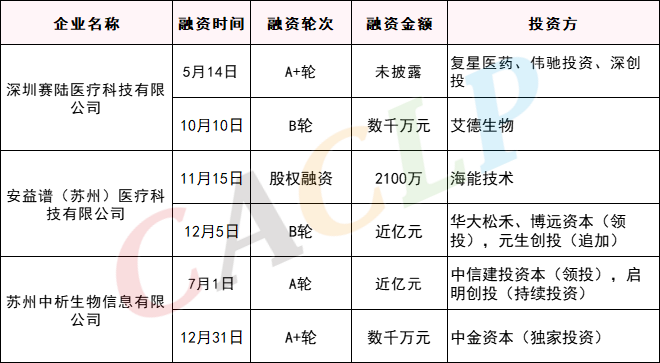 赛陆医疗、安益谱、中析生物3家企业在1年内完成了两轮融资,这一 “高频” 现象,既印证了企业自身技术迭代与商业化推进的快速节奏,也折射出其所处的基因测序、质谱、智慧实验室等细分领域,正成为资本重点布局的高潜力方向,市场认可度与赛道成长预期被资本看好。