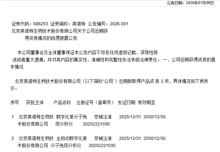 1.单分子免疫分析仪获批,英诺特正式杀入AD血检,亿欧,2026