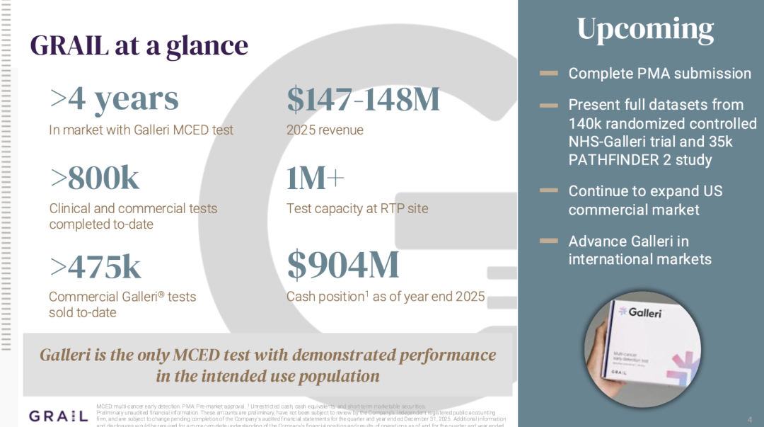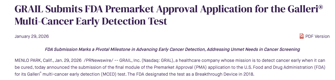 两大梦幻单品,分别有哪些获批难点和看点?” “合规拿证,会开启全新的增长时代”一直没等到国内的检验立项指南发布,所以我们先看看海外。1月29日,Grail宣布其多癌早筛产品Galleri完成了FDA PMA(上市前申请)的提交:另外,最新消息是MCED医保报销的法案已经如我们所预测,获得了总统签字批准,详情如下:4天后的2月2日,Natera宣布其定制化MRD产品Signatera的CDx适应症完成了FDA PMA的提交:一周之内,两个承载肿瘤NGS未来增长梦想的单品,都正式进入了合规拿证的冲刺阶段。PS:这篇仅代表个人观点。如果我俩理解不一样,那么你是对的。欢迎留言区探讨。 PS:视频速览版在文末哦😄 两款产品提交PMA的证据如下:PATHFINDER 2+NHS-Galleri(第一年)+新旧版本的桥接数据其中最核心的数据肯定是P2,用于证明test performance关于P2的详细分析,我们之前写过了,感兴趣的可以去回顾下:提交PMA的证据包更简单,因为它的适应症选的很硬:MIBC(浸润性膀胱癌)术后使用阿替利珠单抗进行辅助治疗的伴随诊断注册临床的研究结果发表在了NEJM上,完成了MRD的三重证明闭环:MRD+,从用药中获益;MRD转阳,从用药中获益;MRD-,无需用药;关于IMVigor 011的详细分析,我们之前也写过了,感兴趣的去回顾:首先,我的观点很明确:这两个产品拿证都是板上钉钉的事情,没有“成或不成”,只有“快或慢”。同时,这个获批也会首次从合规层面给出一个大家都关心的答案:在IMvigor 011中,Natera给出的回答是“1+6+1”——1次基线、每6周做一次监控(持续9个月)、第12个月再做一次监控如果最终真的获批1+7的话,MRD将正式变为“高频复购产品”,商业模式的根基有了质的提升。下面这个让大家流了很久口水的增长就只不过是开胃菜而已了:同时,虽然首张PMA局限于膀胱癌这一细分适应症,但它的核心价值在于打破了FDA对实体瘤MRD技术的监管坚冰。一旦监管路径跑通,后续结直肠癌、肺癌等大癌种的扩项将不再有监管阻碍。上市四年,Galleri总共卖出去了不到48万份,和cologuard这样的季度百万精英相比,绝对是不够看的。我们在之前分析EXAS增长时就提过,一个筛查产品想要放量,有三步:最新消息,美国时间2月3日,川普已经正式签字通过了MCED报销法案2029年生效,起始65岁以下(不含),报销价对标肠癌筛查同时,最终FDA的批准也会回答大家很关注的另一个问题:类似于Pathfinder 2这样的证据,究竟能支撑监管部门批准哪些癌种打包进MCED?这不仅关乎US,也会给全球其他地方的监管机构提供重要的参考。两个承载着肿瘤NGS未来梦想的大单品,终于走到了合规拿证的那一刻。