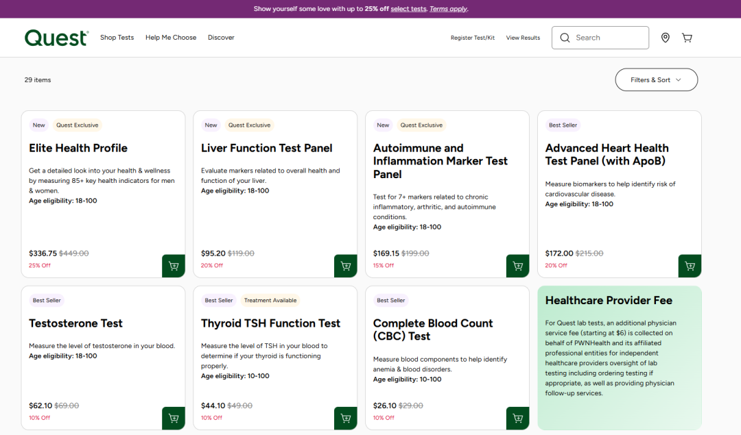 | 纽约——Quest Diagnostics的消费者自测业务在2025年展现出强劲增长,全年创收约2.5亿(约折合17.28亿人民币)美元。公司高管在周二举行的第四季度财报电话会议上透露,该业务板块同比增长率超过20%,涵盖旗下QuestHealth.com平台及与外部远程医疗、可穿戴设备企业的合作项目。QuestHealth.com作为直接面向消费者的检测订购渠道,2025年业务规模同比激增35%。公司总裁兼首席执行官吉姆·戴维斯表示,该平台已扩展至150余项检测服务,其中包括售价336.75美元、可评估85项生物指标的“精英健康档案”套餐。2024年11月,Quest正式为旧金山远程医疗公司Hims & Hers提供实验室支持,其用户可选择年费199美元的50项检测或499美元的双年度120+项检测方案。此外,Quest还为健康企业Function Health(德克萨斯州)及可穿戴设备品牌Oura、Whoop提供检测服务,合作套餐覆盖50至65项指标,定价从99美元至350美元不等。针对业务增长的可持续性,戴维斯表示,公司对远程医疗及可穿戴领域合作伙伴的客户续约率、QuestHealth.com的复购率均持“乐观态度”。首席财务官萨姆·萨马德补充,2026年Quest计划签署更多外部合作以拓展消费者自测业务,并强调该现金支付模式无需承担患者优惠、支付方拒付及坏账风险,利润结构具备显著优势。政策层面,戴维斯透露,尽管《保护医疗保险访问法案》(PAMA)项下的降价压力暂获一年豁免,Quest仍将持续推动《实验室检测服务改革与增强可持续更新法案》(RESULTS)的立法进程,力求永久性调整医疗保险检测报销机制。“上半年我们将全力推进该法案,力争秋季前落地。”戴维斯称。财报显示,2025年第四季度Quest营收达28.1亿美元,同比增长7%,高于华尔街预期的27.6亿美元。检测申请量攀升9%,单次检测收入微降不足1%。归属公司净利润为2.45亿美元(每股2.18美元),调整后每股收益2.42美元,均超分析师预期。全年营收总计110.4亿美元,同比增幅12%,净利润9.92亿美元(每股8.75美元),调整后每股收益9.85美元。2025年全年销售、一般及行政支出为19.7亿美元,同比增11%。截至年底,公司持有现金及等价物4.2亿美元。展望2026年,Quest预计营收区间为117.0亿至118.2亿美元,调整后稀释每股收益10.50至10.70美元。同时,董事会批准将季度股息由0.80美元上调至0.86美元,年度股息达3.44美元。受业绩利好推动,Quest Diagnostics周二早盘股价上涨4%,收报199.56美元。