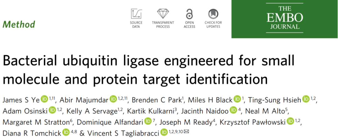 2026 年 2 月,美国得克萨斯大学西南医学中心等机构的研究团队在《The EMBO Journal》(Volume 45 | Issue 3)在线发表了题为 “Bacterial ubiquitin ligase engineered for small molecule and protein target identification” 的研究论文,团队基于军团菌 SidE 泛素连接酶开发出模块化邻近连接技术 SidBait,为小分子和蛋白质靶标鉴定提供了新工具。
